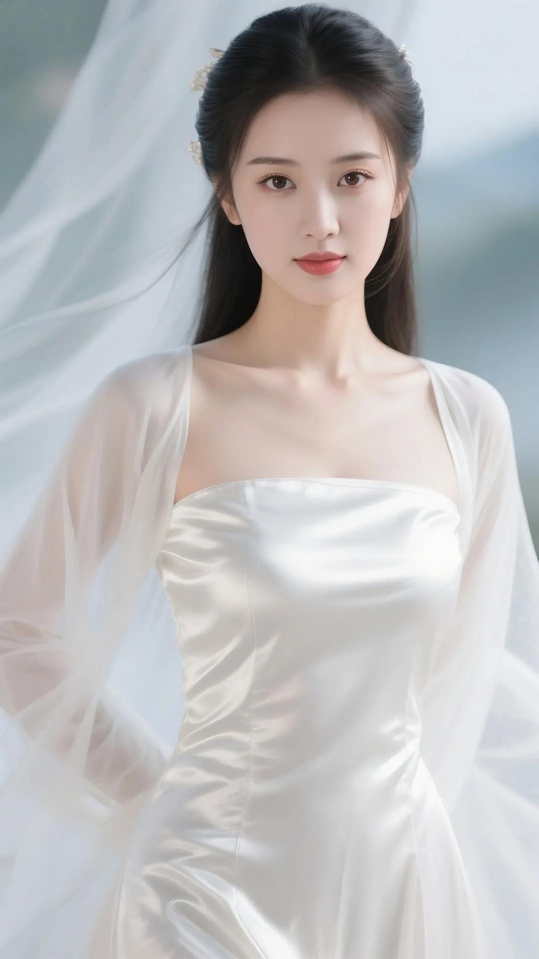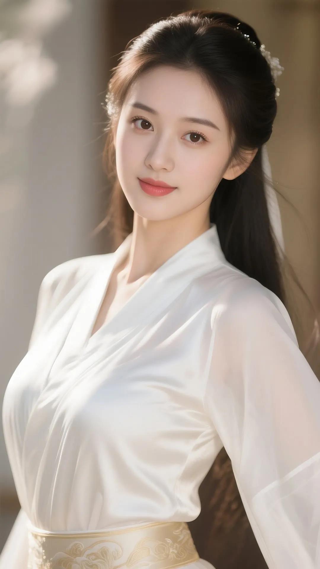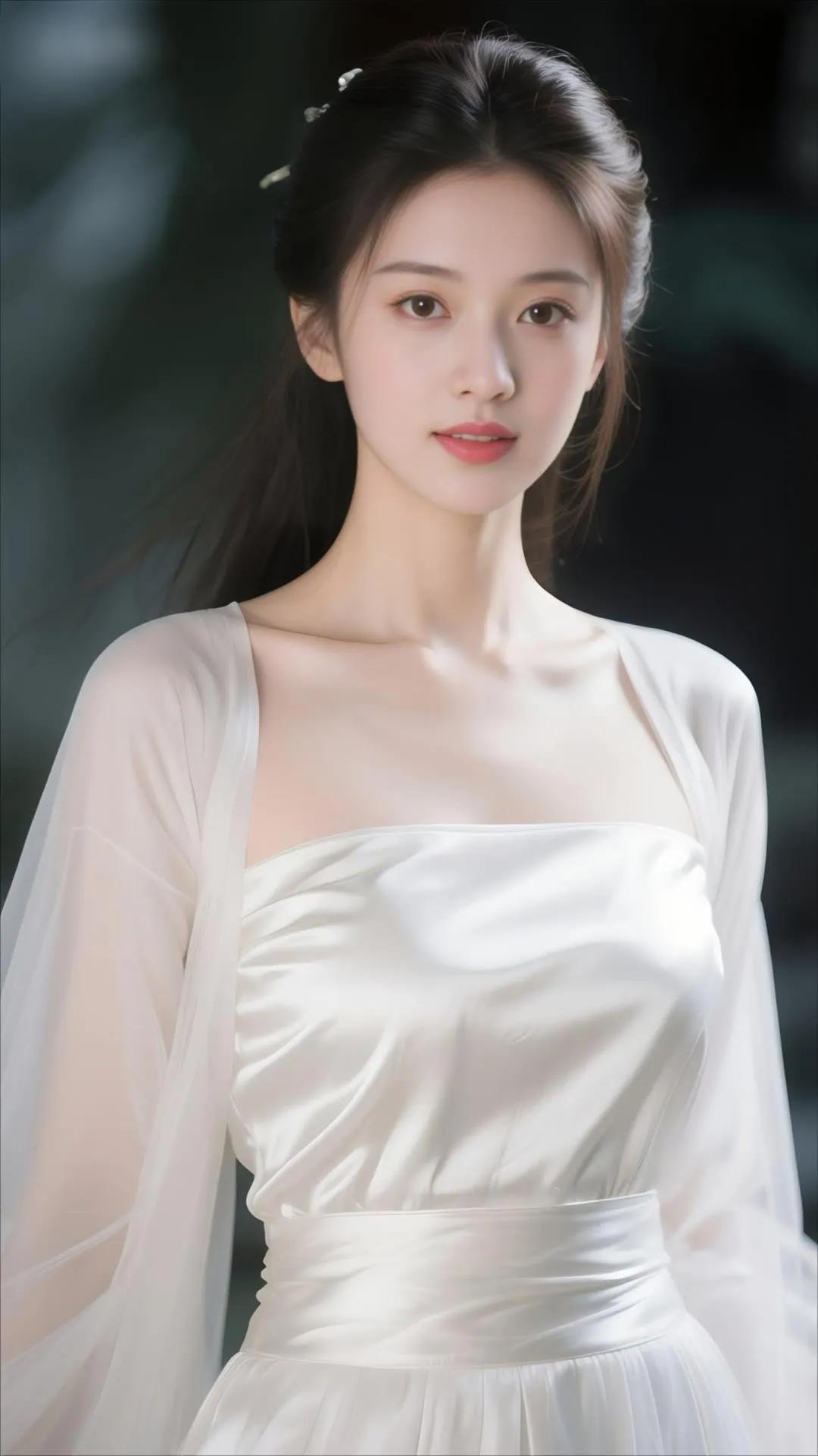 温柔优雅的古典美人,白纱裙摆飘逸,宛如仙子降临。
