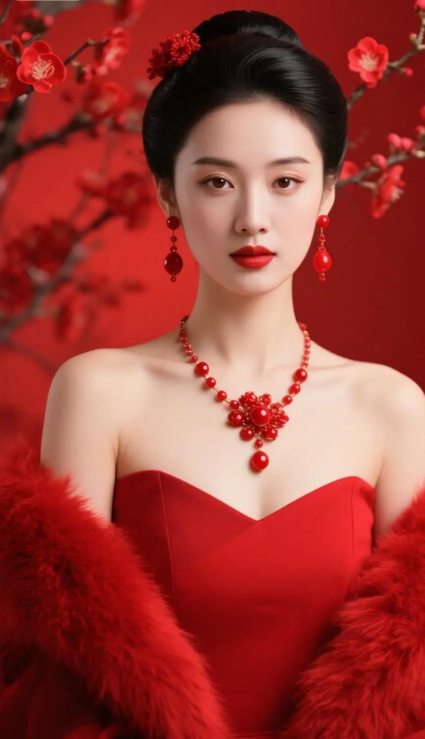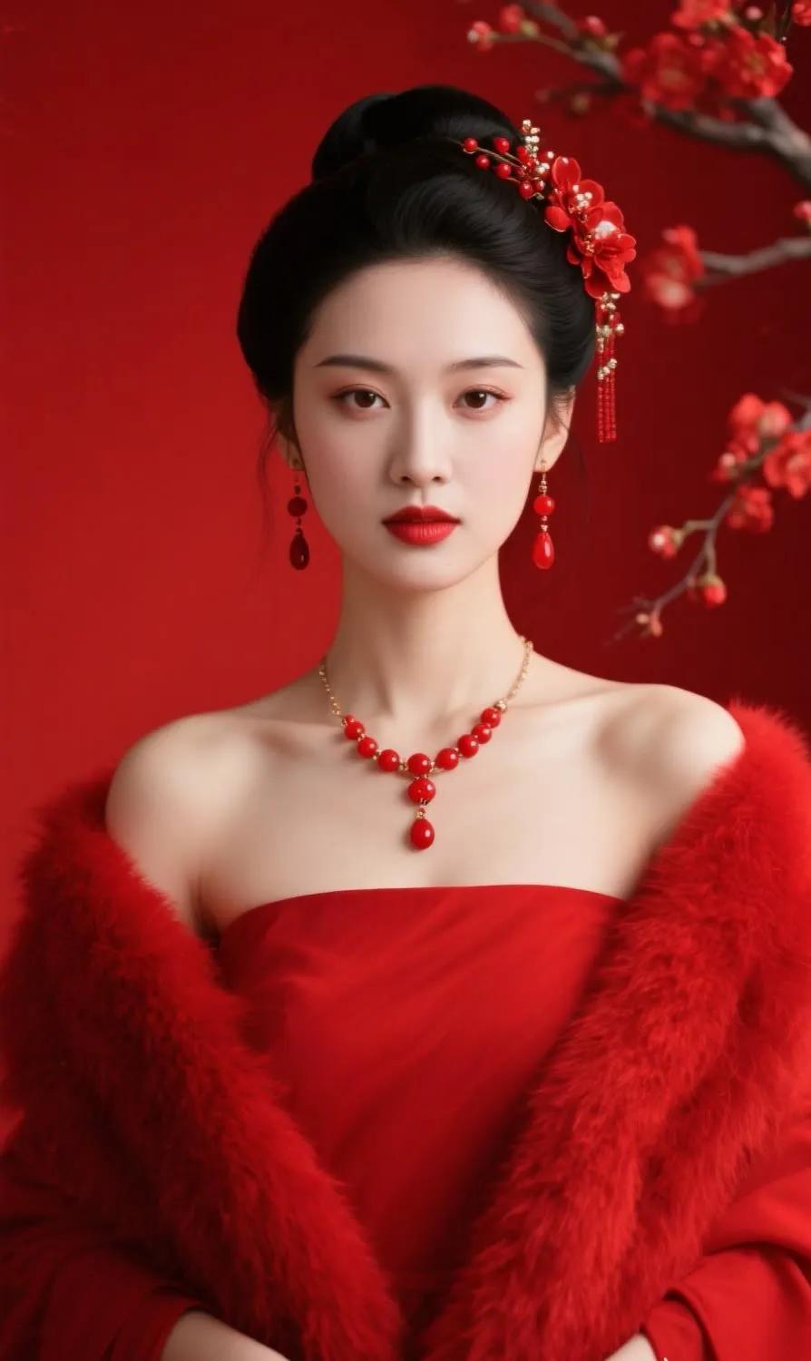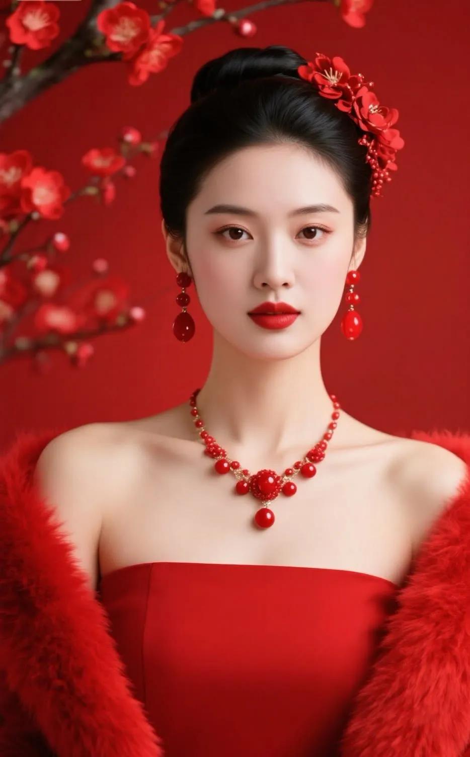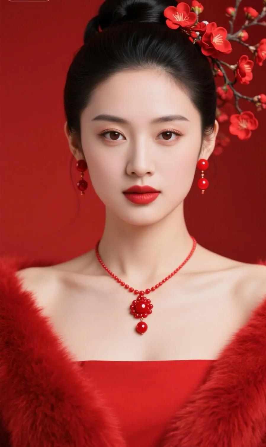 温柔甜美的微笑,精致的妆容和优雅的耳饰,散发着迷人的魅力。
