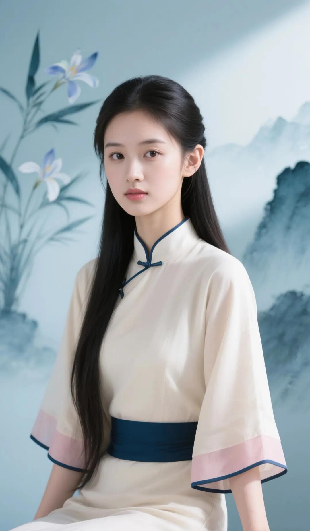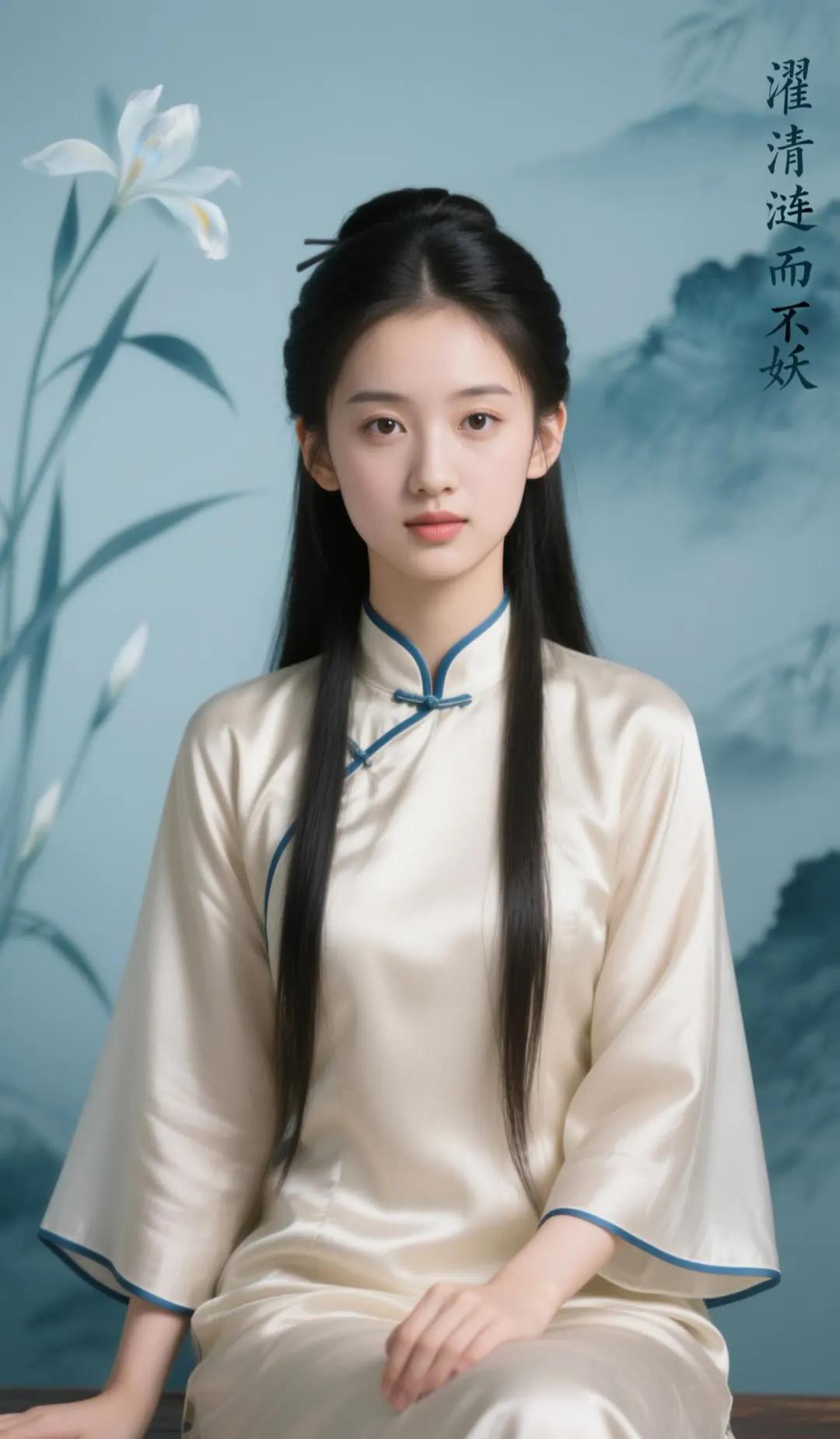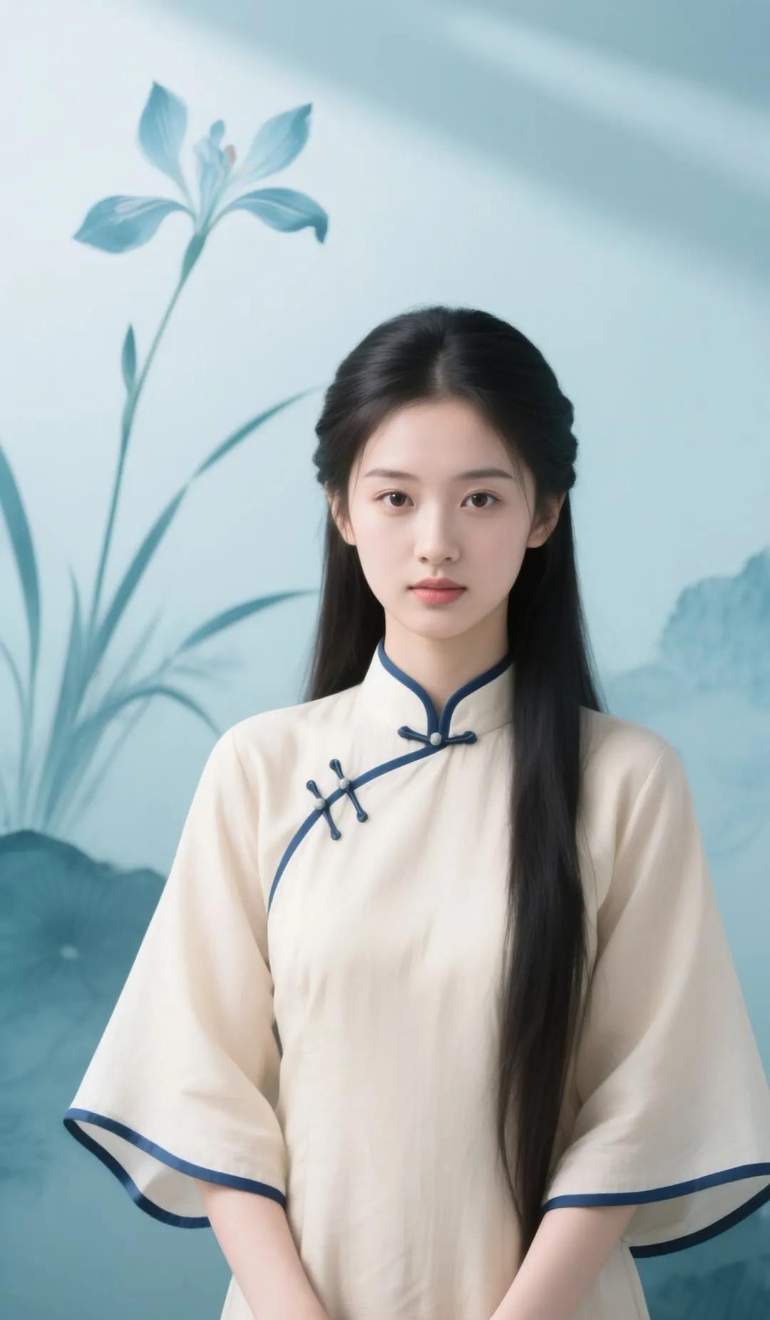 梦幻蓝裙少女,温柔似水,宛如画中仙子。
