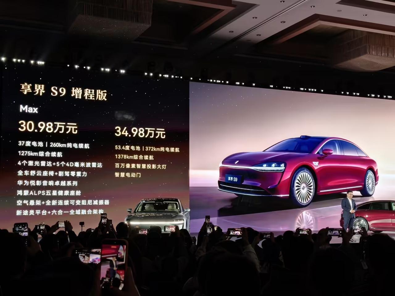鸿蒙智行新款享界S9发布!30万级智慧旗舰轿车杀疯了 增程版:Max 30.98万 / Ultra 34.98万 纯电版:Max 32.98万 / Ultra 36.98万 纯电CLTC最高816km,增程综合1378km[666] 智能配置成堆:星闪技术解锁比蓝牙精准6倍,36个传感器全维防碰撞,连空气悬架都是标配,这豪华感和安全感,同级竞品看了估计得挠头[吐舌] 30万出头买“全景智慧旗舰”,你觉得享界S9能抢走多少BBA用户?