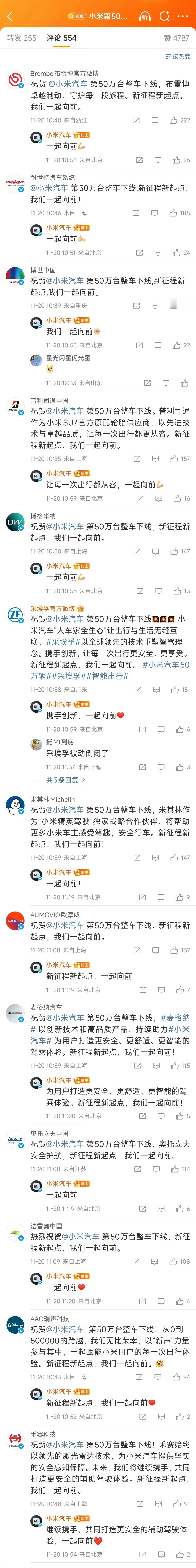 卧草真吓人啊评论区全是超级大牌的祝贺,全是小米的供应商,太tm豪华了