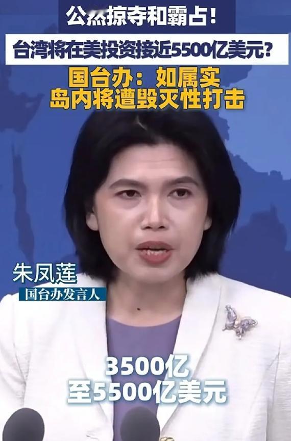 国台办:如属实岛内遭到毁灭性的打击! 朱凤莲称:台湾将在美投资接近3500亿至