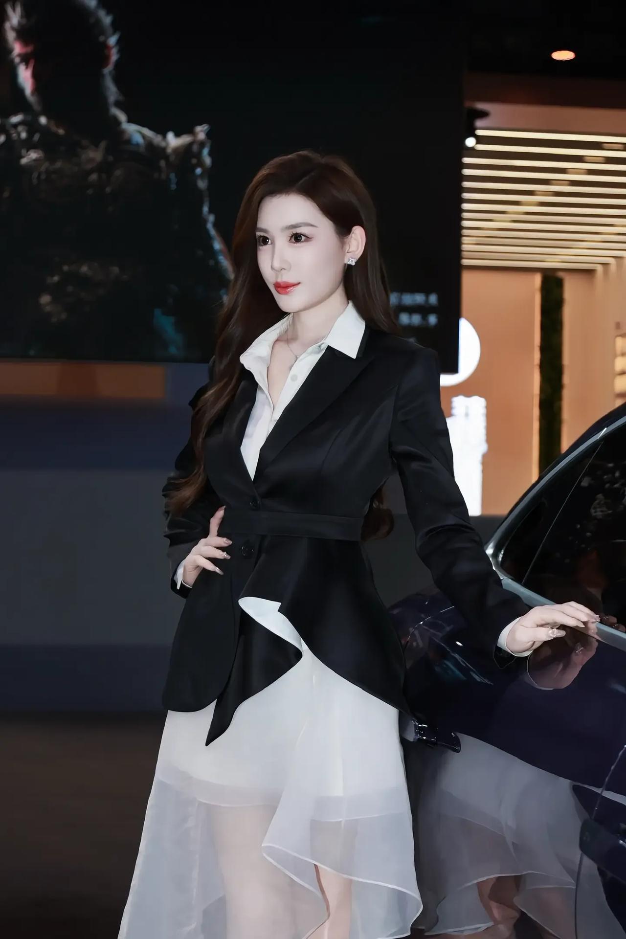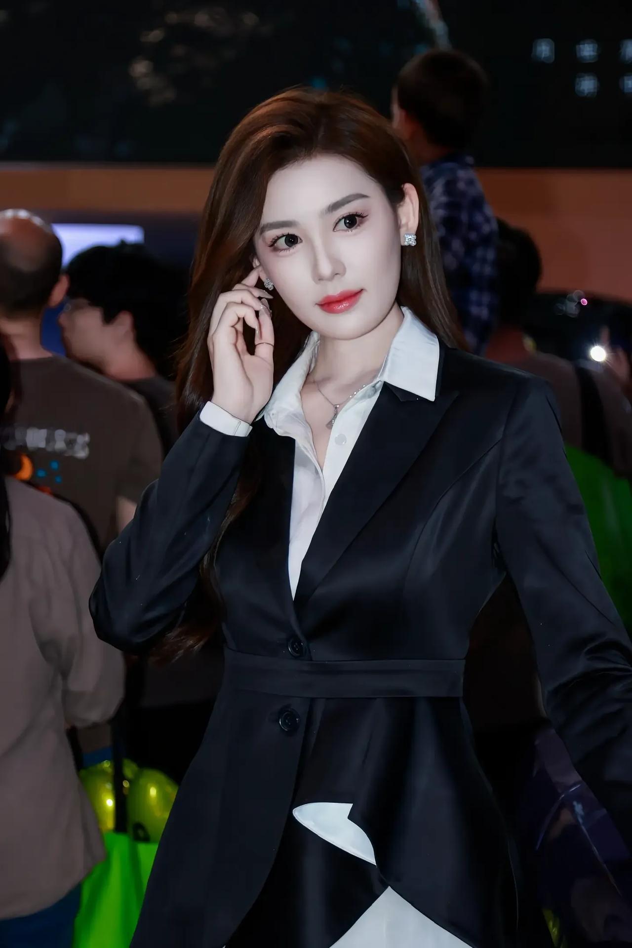 车展上,银灰色西装搭配白色内搭,尽显美女车模魅力!👗💄👠