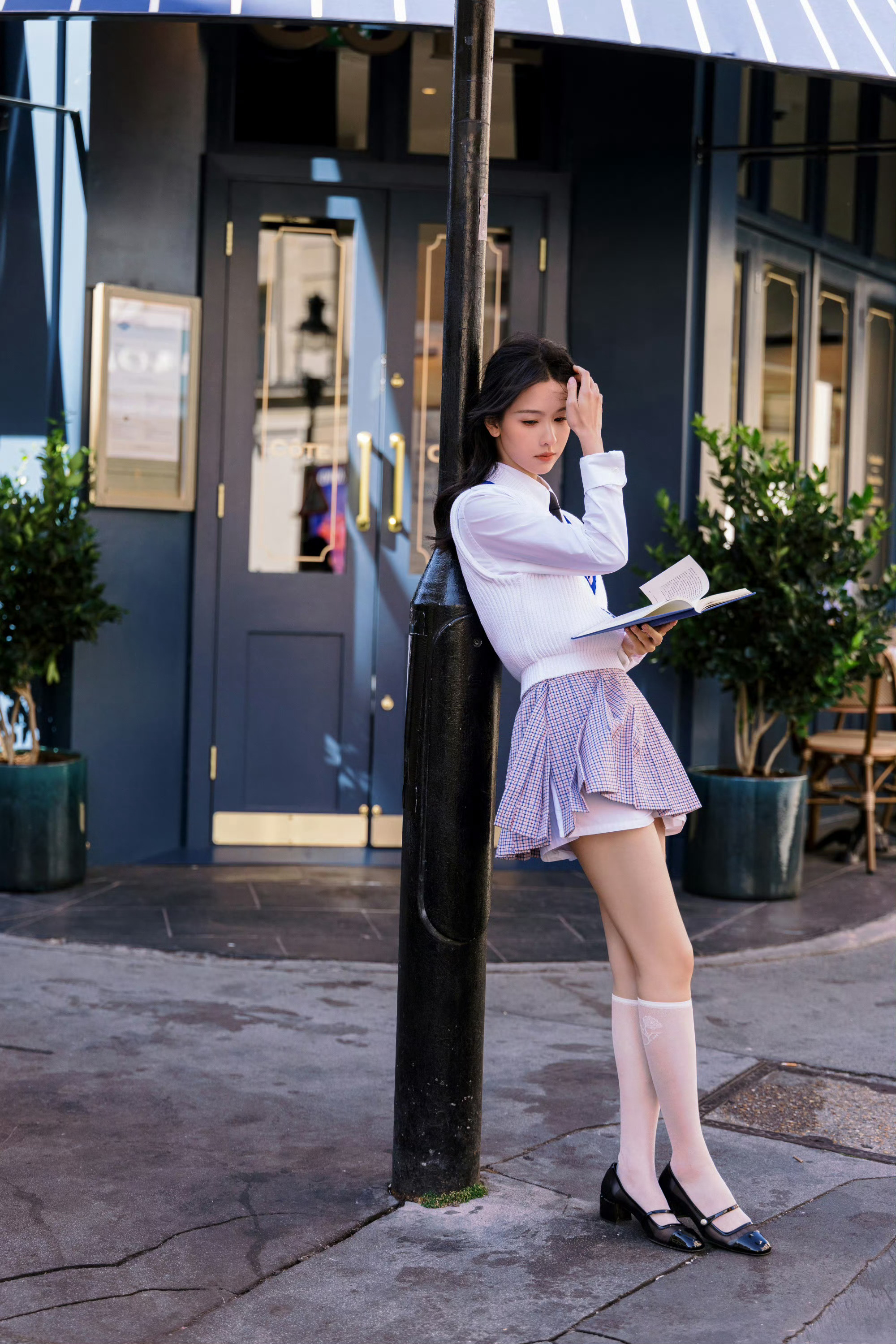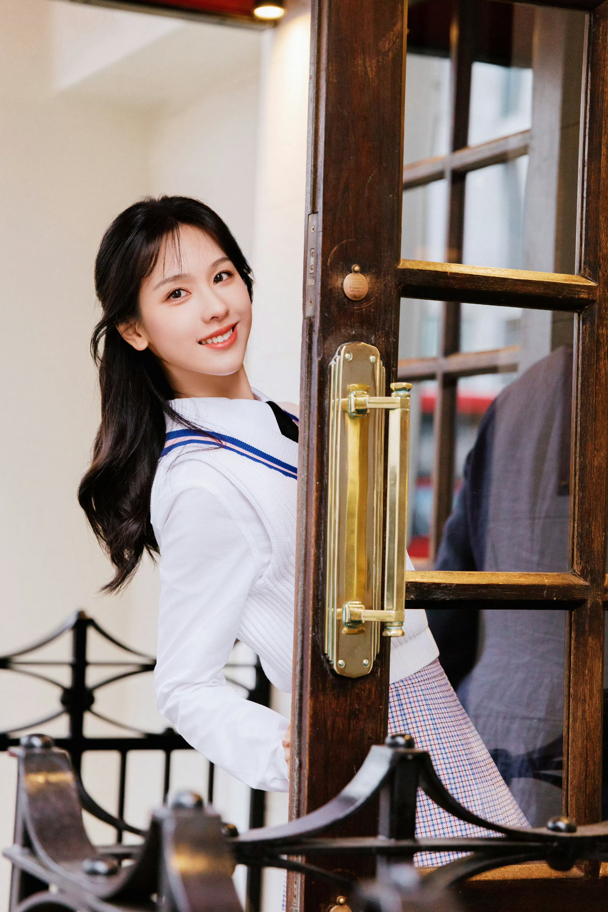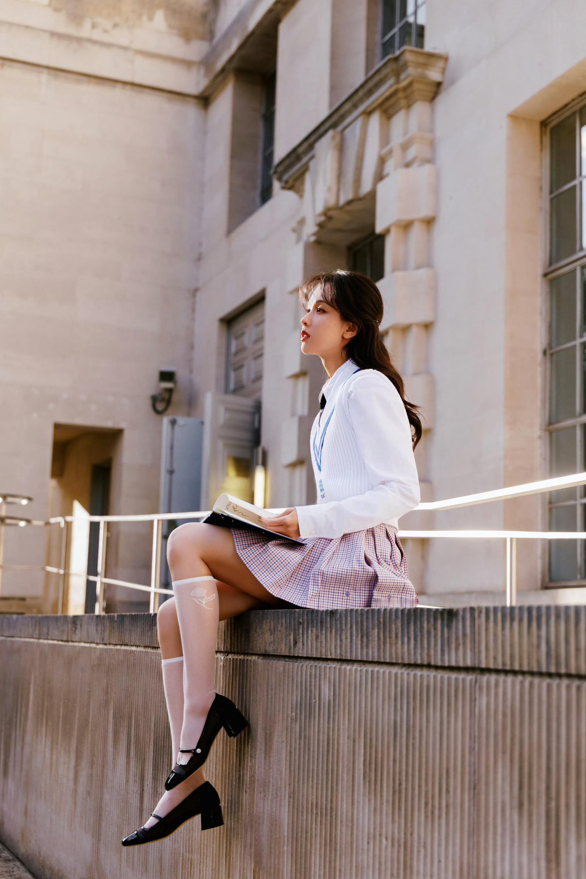 陈都灵 x 英伦风校园少女感·衬衣短裙白袜青春甜美
