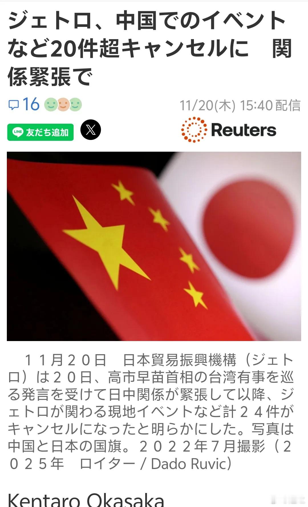 日本贸易振兴机构表示,已经有24个会谈或者活动被取消