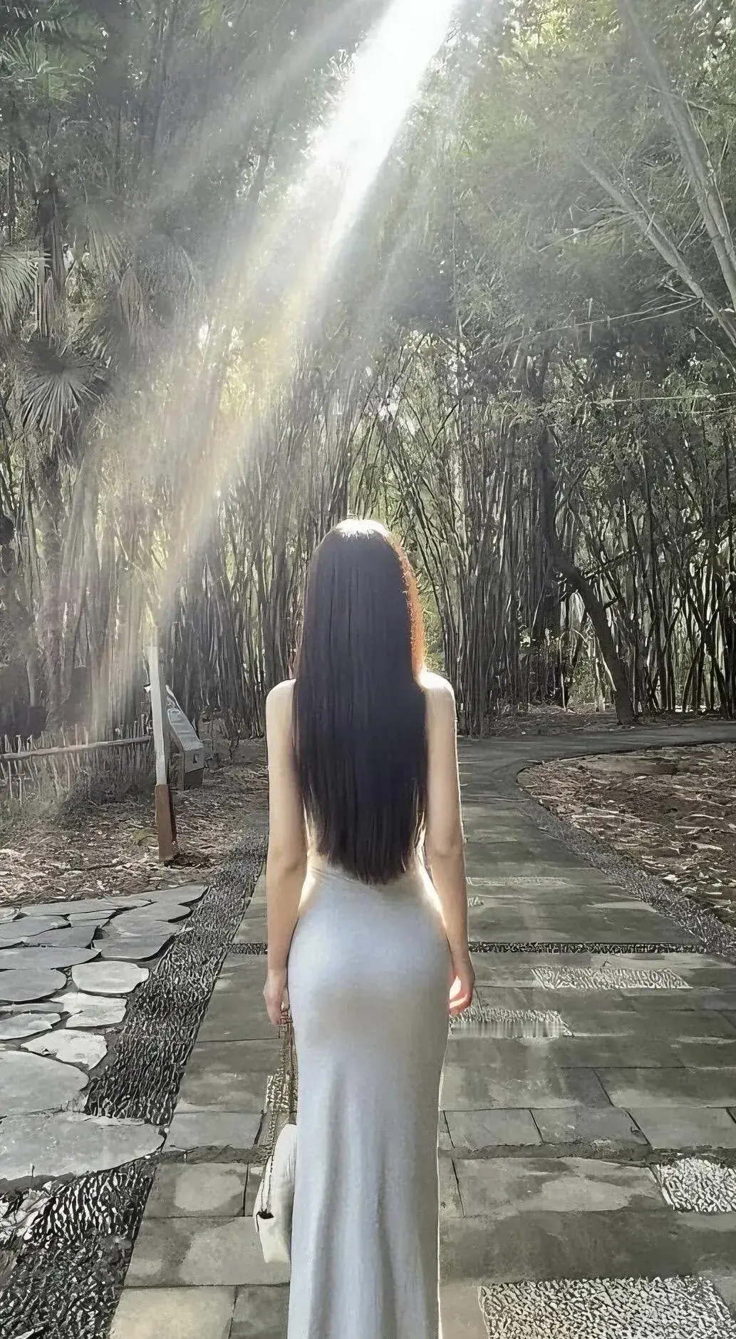 美女姐姐,惊艳的背影,长发披肩,美得像瀑布,美不胜收!