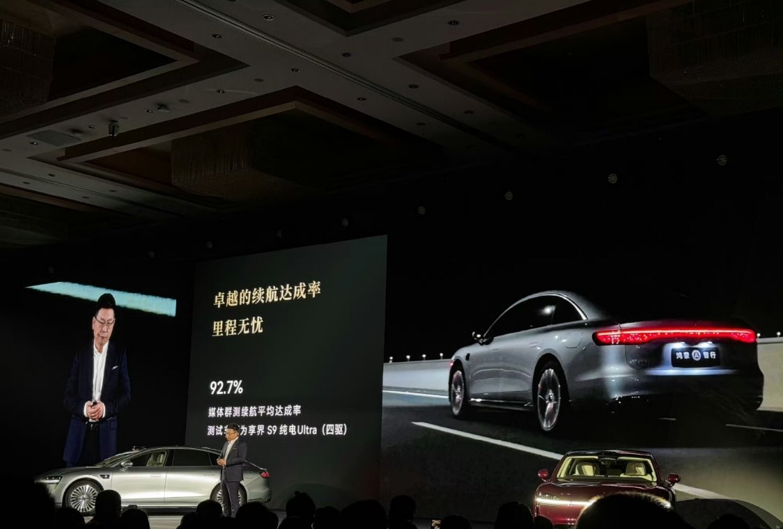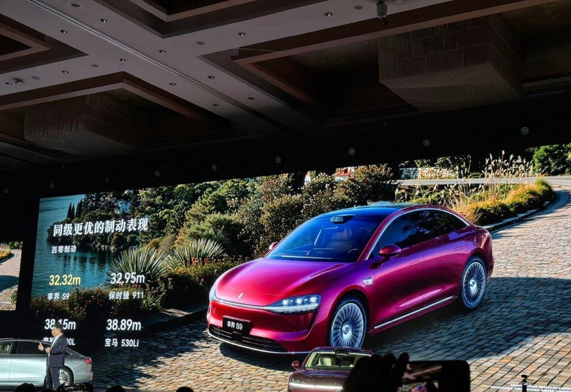 新款享界 S9 豪华感的体现:风阻系数 0.193,纯电续航 816 km,百零制动 32.32 m,均优于保时捷、奔驰宝马等豪华品牌。