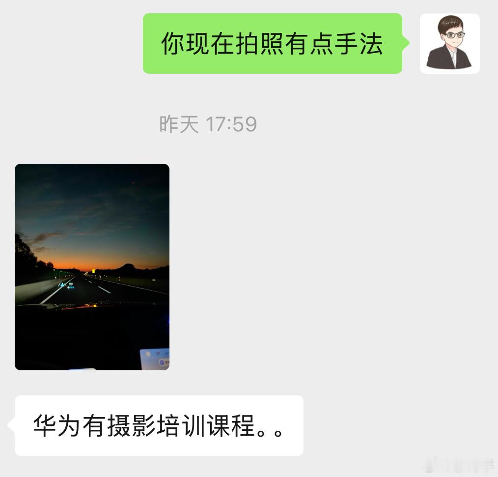某鸿蒙智行交付中心的店长,最近热衷于给我发随手拍的照片,你别说哈,这拍照技术提升挺明显的,以前跟我一样是个菜鸡。原来华为还有专门的摄影培训课程……搞的我都想学学了。