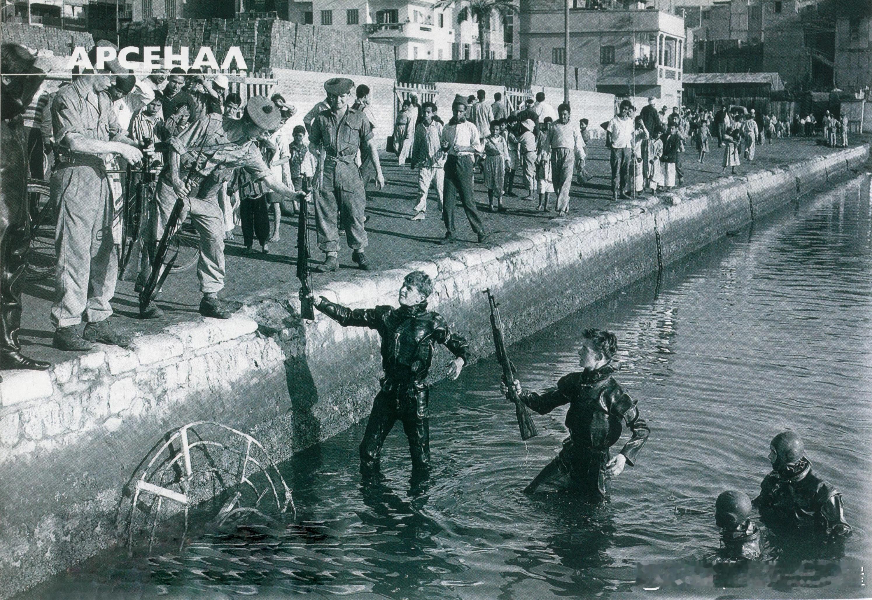 1956年11月英国潜水员在塞得港挖掘埃及人隐藏的武器