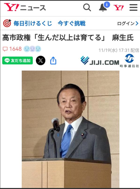 11月19号,日本前首相麻生太郎在东京发表演讲的时候强调,对于高市早苗这个新政权,我们“既然生了就要养”。那么如何看待麻生的这个发言? 日本前首相麻生太郎最近一句话炸了锅,2025年11月19日在东京的自民党地方会议上,他当着不少党员和媒体的面说,对高市早苗的新政权,“既然生了就要养”。 这话听着像家里长辈护犊子,可从一个当过首相、手握自民党重要派系权力的人口里说出来,就不是简单的客套话了。要知道高市早苗刚上台没半个月,政权还没完全站稳脚跟,麻生这话等于公开给她站台撑腰。 先把当时的情况说清楚,麻生演讲的场合是自民党东京都支部的动员大会,台下全是本党骨干,还有不少地方议员。他讲这话前刚批评了党内几个不配合新政权的派系,话锋一转就提了“生了要养”,明摆着是警告党内别给高市添乱,得齐心协力帮她把政权稳住。 可能有人不明白,麻生和高市不是一个派系的,麻生是“麻生派”的领袖,高市属于“细田派”,按说党内派系之间互相提防才对,怎么麻生反倒主动帮忙?这里面藏着自民党最核心的规矩——派系抱团保政权。 高市早苗能上台,本身就是几个大派系妥协的结果,要是刚上台党内就内斗,不仅政权撑不了多久,自民党的执政地位都可能受影响。麻生作为老资格,说这话既是帮高市,更是在维护自民党整体的利益,毕竟只有党内团结,才能保住执政的宝座。 这话里还有层更深的意思,“生”指的不是高市自己上台,是自民党各个派系一起把她推上去的;“养”就是要求大家出钱出力出政策,帮她解决民生、外交这些棘手问题,别光站在旁边挑毛病。 麻生这么做也有自己的小算盘,他的“麻生派”近几年势力有所下滑,帮高市稳住政权,就能在新政权里换更多话语权,比如让自己派系的人进内阁当大臣,拿到更多政策主导权。2021年岸田上台时,麻生也说过类似的话,后来麻生派就拿到了财务省的重要职位。 更值得注意的是,高市早苗上台前就因一些言论引发过争议,不少国家都在盯着她的政策动向。麻生这时候公开表态,也是说给外界听的,告诉大家日本自民党内部对新政权是统一支持的,别想趁机挑拨离间。 有日本政治评论家就说,麻生这话是“一石三鸟”,既帮了高市,稳了党内,又给外界释放了团结信号。可这种“养政权”的方式也有风险,要是高市后续政策出了大问题,帮她站台的麻生和其他派系都得跟着受牵连。 大家想想,咱们身边有没有这种“抱团做事”的情况,明明不是一伙的,为了共同的目标却能拧成一股绳。换成你是麻生,会公开说出“养政权”这种话吗?还是会私下里协调派系关系?评论区聊聊你的看法。 高市早苗也挺懂规矩,麻生演讲第二天就带着内阁官房长官去拜访他,还特意提到“会虚心听取前辈的意见”,等于给足了麻生面子,也认可了这种“派系互助”的模式。 不过这种靠派系“养”起来的政权,也容易出问题。2018年安倍第二次执政后期,就是因为过度依赖派系支持,导致不少政策向派系利益倾斜,最后引发了民众不满。高市要是处理不好“派系利益”和“国家利益”的关系,早晚得栽跟头。 麻生的“生了要养”,表面看是前辈帮后辈,实际上是自民党维持执政的老套路。可时代不一样了,现在日本民众对派系政治的不满越来越多,要是新政权只靠派系抱团,不真刀真枪解决民生问题,再怎么“养”也撑不了太久。 看国际政治就像看大戏,台上的人说一句话,背后可能藏着好几层心思。麻生的一句话,既暴露了日本政党政治的运行逻辑,也给高市的新政权提了醒——靠别人“养”只能撑一时,自己立得住才是真本事。 参考信息: 搜狐网——2025-11-20日本前首相麻生太郎在东京发表演讲:对于高市早苗这个新政权,“既然生了就要养”