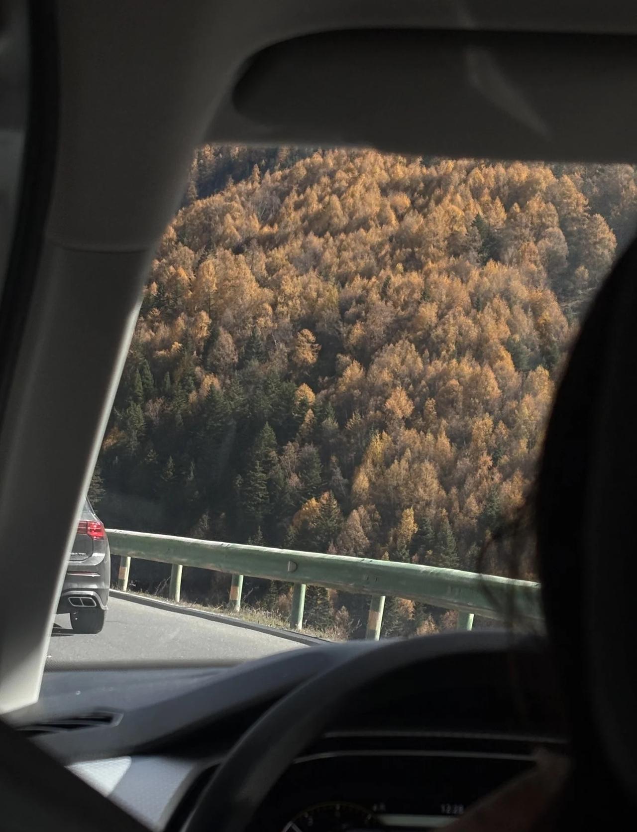 在路上🏔️🍂 川西 一路上全是美景 像置身巨大的 大自然展览空间 只是静静地看着窗外 都会感觉到幸福平静安心 ^_^ 最好的风景永远在路上 只要在路上总会有惊喜 不赶路去感受路 旅游 川西美景 川西