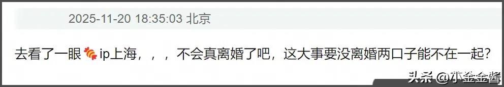 唐嫣罗晋,连夜冲上热搜。 11月20日,42岁的唐嫣,冲上热搜,让人意外的是,罗晋父亲在北京去世,唐嫣的ip却在上海,网友:这是真离了? 当年,陈妍希父亲去世时,她和陈晓还没离婚,但因为感情破裂,陈晓并没有出席岳父葬礼,甚至连个安慰都没有。[泣不成声] 如今,罗晋遭遇人生变故,70岁父亲与世长辞,23号在八宝山举办葬礼,有细心的网友发现,公公昨天去世,唐嫣今天的ip依旧在上海,并没有连夜赶过去处理后事。 这是不打算参加葬礼了? 两人感情是真的破裂了么? 不过,也有网友表示,微博账号也有可能是工作室打理的,唐嫣本人可能已经在北京,至于真相如何,23号自见分晓。[泣不成声] 两人结婚多年,一直是娱乐圈的模范夫妻,还有个可爱的女儿,不希望两人离婚,希望所有的一切,都是个假新闻吧。