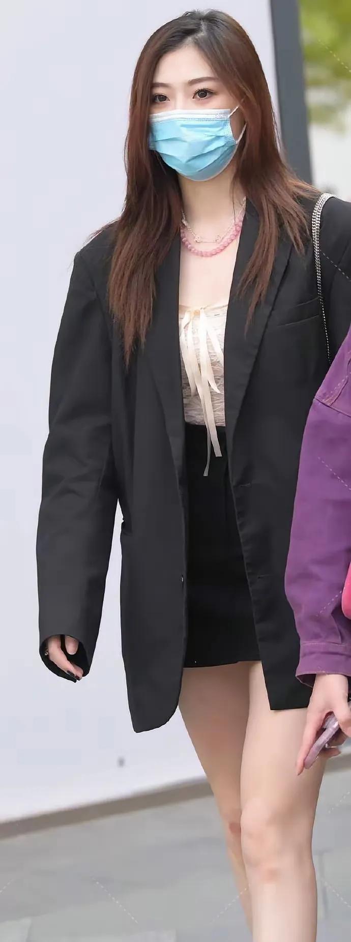黑色西装外套搭配粉色项链,简约又时尚!👠💄