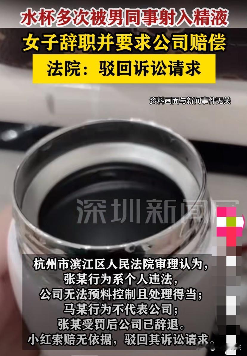 浙江杭州,女子发现自己的水杯被同事弄入精液,遂选择报警,结果报警后,发现同事已经不是第1次这么干,已经是第3次。虽然事后,同事被警方拘留3日,还被公司开除,但是女子仍然难以释怀,认为公司没有尽到劳动保护等义务,提出离职并要求公司支付经济补偿金,而后因公司同意解除合同,但拒绝支付经济补偿,与公司对簿公堂。法院这样判! 据悉,2011年12月12日,女子小红入职一家公司,担任工程服务岗,并与公司签订了劳动合同。 2014年5月5日,小红在公司办公期间,拿起自己办公桌上日常使用的保温杯喝水时,发现保温杯内的水疑似混有精液。 小红气坏了,当即将此事报告给公司。 公司的领导听闻此事,非常重视,当即联系派出所并调取了监控。 次日,小红便拿着保温杯和监控前往派出所报警。 报警后,警方很快锁定嫌疑人系小红的同事张某,并要求公司相关人员不要提前告诉张某,由警方直接审问。 2014年5月8日,张某所在的部门领导马某联系小红,希望小红卖给自己一个面子,撤案,但被小红拒绝。 次日,张某便主动投案。 而据张某交代,其并不是第一次这么干,前前后后已经3次趁办公室没人的时候,在小红办公桌附近自 慰并将精 液弄到小红平时喝水的保温杯内。 2014年6月11日,警方查明上述事实后,以寻衅滋事为由,对张某作出行政拘留3日的处罚。 随后,小红所在的公司也将张某辞退。 不过,虽然如此,小红得知张某的所作所为后,又想到事发后张某的部门领导马某不但没有协助警方调查,还违反警方的保密要求提前告诉张某,并要求自己撤案,难以释怀,认为公司未按照劳动合同约定提供劳动保护或者劳动条件,提出离职,并要求公司支付1.7万余元经济补偿金。 怎料,公司同意小红离职,但是却拒绝向小红支付经济补偿金。 于是,小红一气之下便申请劳动仲裁。 那小红的诉请能否获得支持? 《劳动合同法》第38条规定,用人单位有下列情形之一的,劳动者可以解除劳动合同:(一)未按照劳动合同约定提供劳动保护或者劳动条件的;…… 第46条规定,有下列情形之一的,用人单位应当向劳动者支付经济补偿:(一)劳动者依照本法第38条规定解除劳动合同的;…… 也就是说,用人单位未按照劳动合同约定提供劳动保护或者劳动条件的,劳动者有权解除劳动合同,并要求用人单位支付经济补偿。 具体到本案,也就是说,小红的诉请能否获得支持,关键是看其在公司内的遭遇能否认定为公司未按照劳动合同约定提供劳动保护或者劳动条件。 应当注意的是,劳动保护是指用人单位为保障劳动者生命安全和健康,防止劳动过程中发生事故或职业危害所采取的措施,包括安全卫生设施、防护用品、健康检查等。 劳动条件是指用人单位为劳动者完成工作任务所提供的必要物质、技术条件及工作环境,如工时安排、工作场所安全、劳动强度等。 虽然小红在公司内遭到同事张某的骚扰,但是是公司无法预料和控制的,纯属同事张某的个人行为所致,与劳动保护、劳动条件无关。 再加之,事发后,小红的公司并没有坐视不理,积极联系派出所、调取监控配合调查。 马某作为张某的领导在得知张某违法后为张某求情,也符合常理,同时小红也不能仅凭马某向张某求情,就认为马某存在向张某通风报信等阻碍警方办案的不法行为。 公司在张某被行政处罚后,也及时将张某辞退。 劳动仲裁委员会最终驳回了小红的全部仲裁请求。 据悉,仲裁失败后,小红又提起了诉讼,不过法院的观点与劳动仲裁委员会的观点一致,最终再次驳回了小红的全部诉请。 最后,值得一提的是,《民法典》第1010条规定,违背他人意愿,以言语、文字、图像、肢体行为等方式对他人实施性骚扰的,受害人有权依法请求行为人承担民事责任。 小红虽然不能向公司主张经济赔偿金,但是可以依法要求张某进行赔偿。 这事您怎么看?欢迎在评论区留言,与大家一起交流您的看法! ------ 关注@安律说法 案例中看人生百态,法律中寻破局之法!