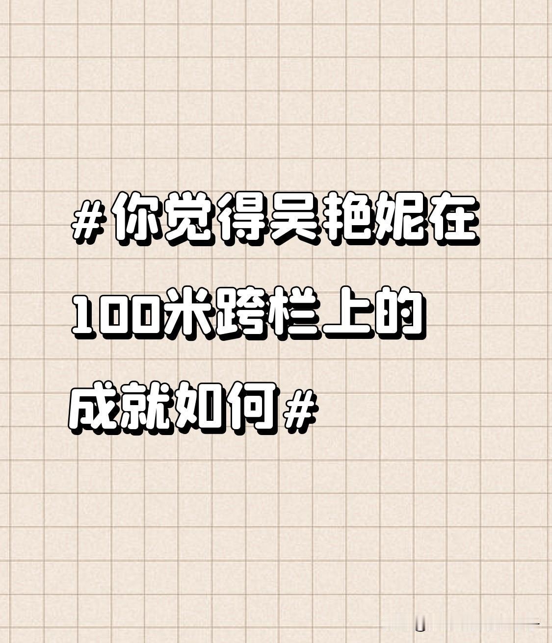 吴艳妮在100米跨栏上的成就有目共睹。她是全运会奖牌的常客,2017年初出茅庐获铜牌,2021年跑出12秒91却惜败拿银牌,这次全运会又以12秒85再摘银。 今年她状态出色,参加多项赛事,全国田径冠军赛还跑出12秒90的年度最佳。不过这次全运会她赛前誓言夺冠,最终没达成目标,给自己打0分。但她的实力不容小觑,只是比赛充满变数。未来还有亚运会等赛事,期待她能突破自我,取得更好成绩。