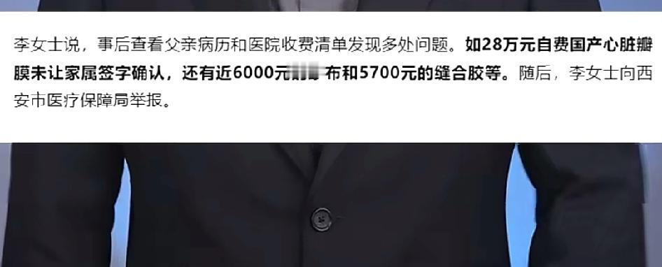 求生被当成有空子钻,你敢质疑吗?质疑可能耽误治疗,你敢不付钱吗?不付钱可能出不了院。被迫信任,被利用,才是最让人寒心的。28万自费国产心脏瓣膜未让家属签字确认,近6000元的纱布和5700元的缝合胶等,查实26项违规问题,涉及违规使用医保基金7.5万。 医院违规,既坑了国家医保,也坑了个人钱包,但后者的维权成本可能更高。