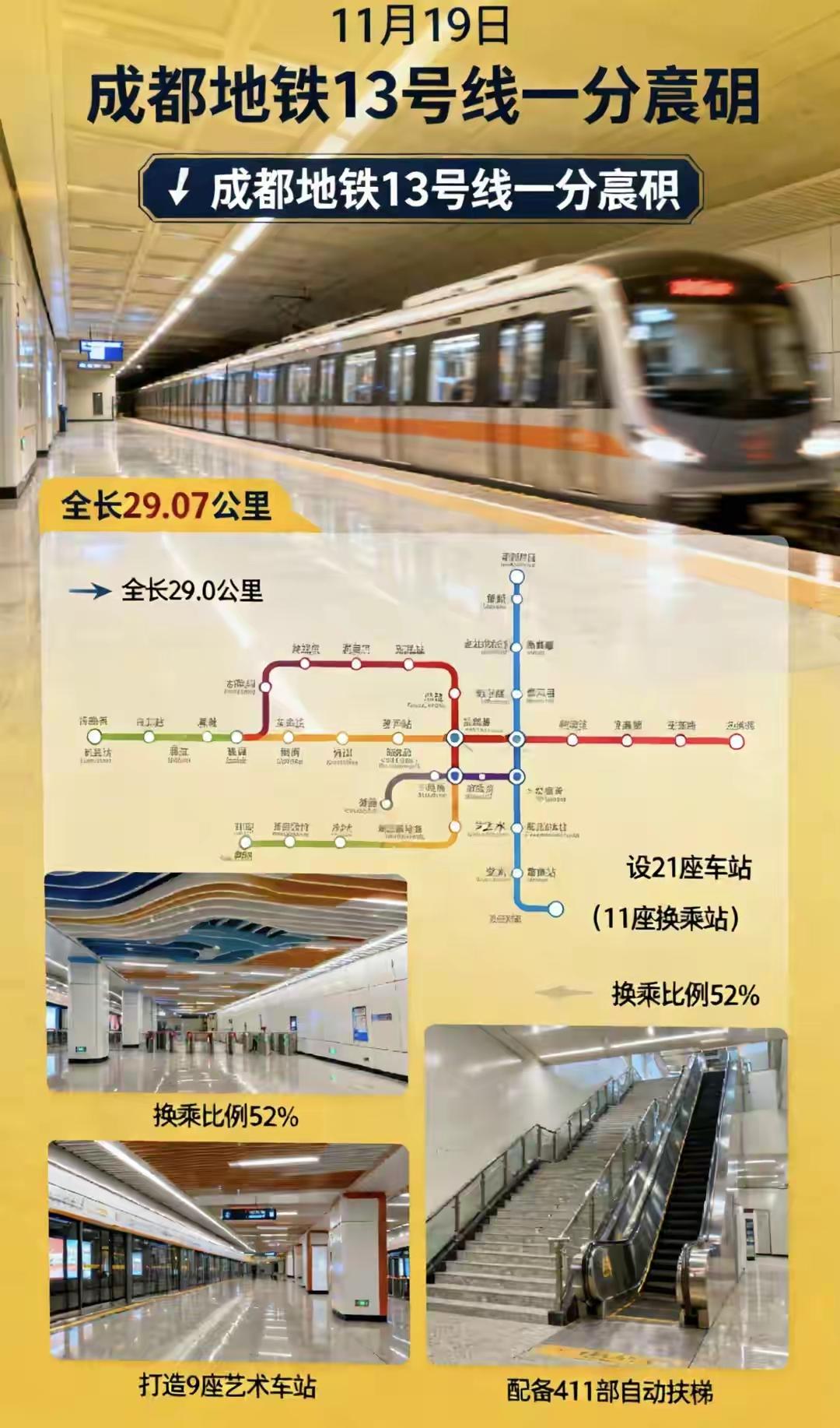 成都地铁13号线只差一步之遥,就和大家说你好了! 可能给大家来个天大的惊喜喽! 猜到官方这迟迟不公布开始运营的消息,正在开通筹备中。 别着急就在昨晚,从抖音上看到轨道交通工作人员透露出的消息,估计在12月13日左右要正式跟大家见面! 诗意天府、人文成都欢迎各位乘坐地铁13号线带来的喜悦感!