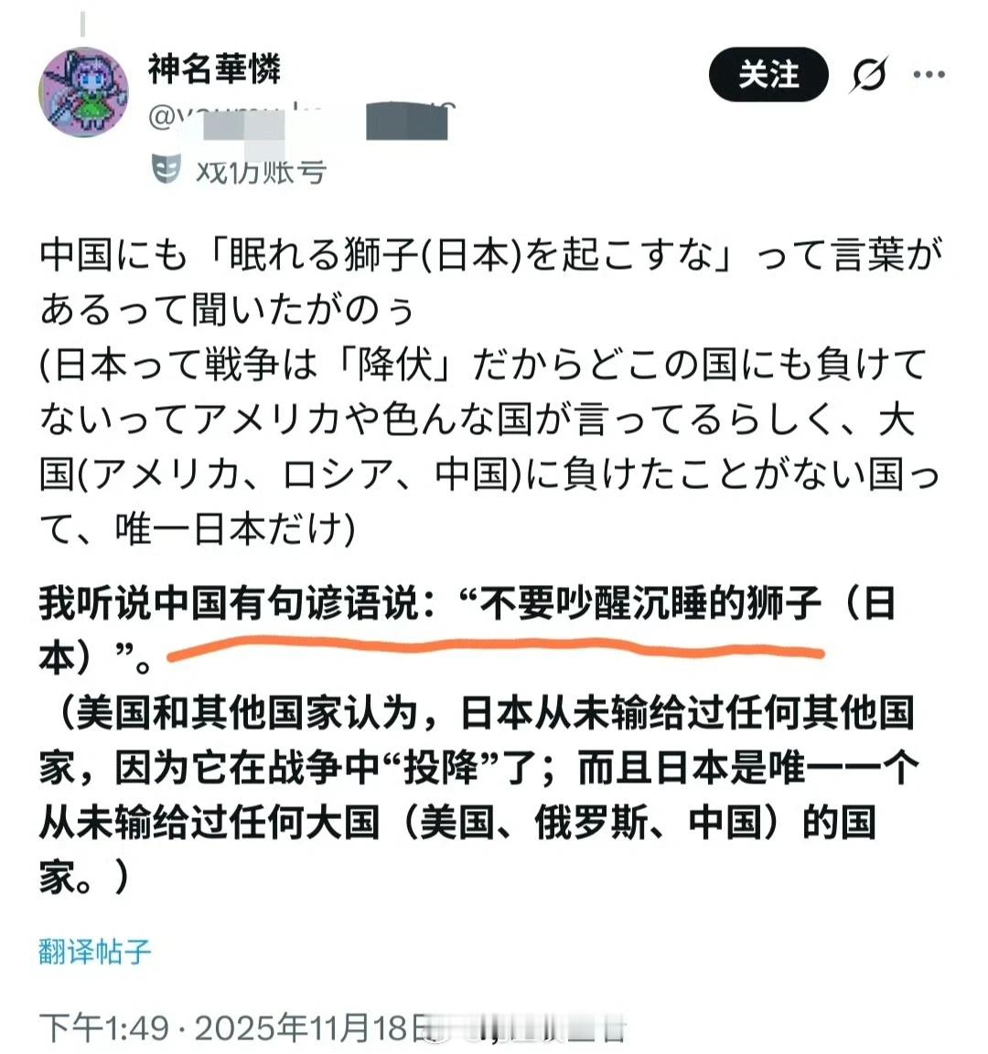 中国倒是醒了,轮到日本是“沉睡的雄狮”了…只是单说近代,日本不是吃了美国两颗原子弹吗?许多日本俘虏也被送到西伯利亚挖土豆了,究竟是狮子还是虱子搞清楚了吗?