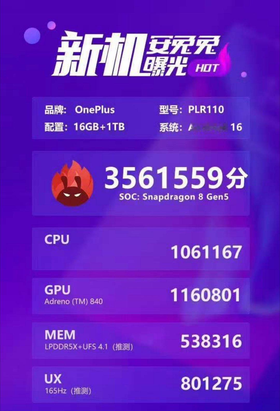一加 Ace6T跑分出来了,安兔兔跑分干到了3561559,没想到搭载骁龙8 Gen5的性能表现强于骁龙8至尊版