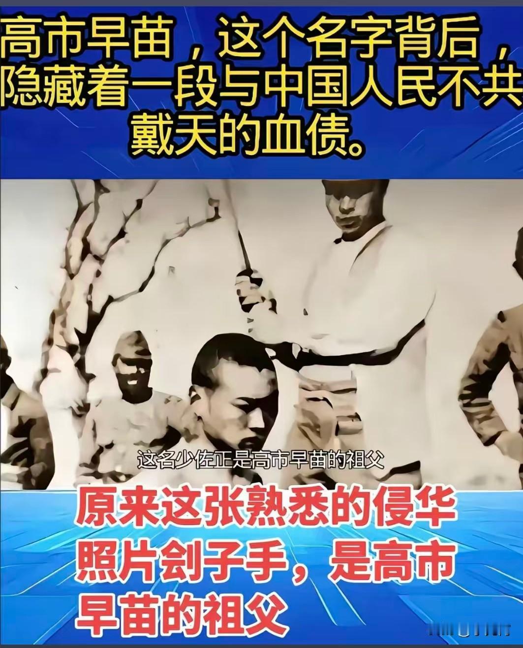 原来这张熟悉的侵华照片的刽子手,就是高市早苗的祖父,反观现在高市早苗能说出这样的话也就不奇怪了,她长期受家庭氛围环境的熏陶,并且她是安培晋三一手提拔上来的,安倍晋三是什么样的人,想必大家也都清楚,所以事出反常必有妖,就不足奇怪了!