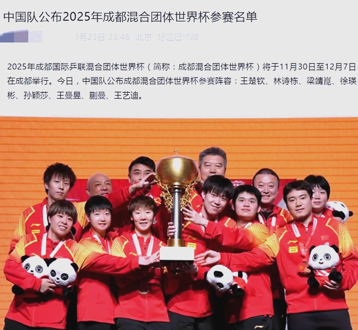 全运会结束,国乒下站比赛积分2500! 2025年成都乒乓球混合团体世界杯将于11月30日至12月7日在中国成都四川省体育馆举行,中国乒乓球队将派出8名队员参赛,包括男队的王楚钦、林诗栋、梁靖崑、徐瑛彬和女队的孙颖莎、王曼昱、蒯曼、王艺迪。 赛事分为三个阶段:小组循环赛(11月30日至12月3日)、循环赛(12月4日至12月6日)、淘汰赛(12月7日),最终决出冠军。 2025年成都乒乓球混合团体世界杯是第3届混合团体世界杯赛事,也是该项目首次纳入2028年洛杉矶奥运会后的重要热身赛。冠军队伍将获得2500个世界排名积分,积分将根据球员个人胜场贡献度分配,直接影响选手的奥运资格排名。因此,本届赛事被视为各国选手争夺奥运门票的“关键战场”。