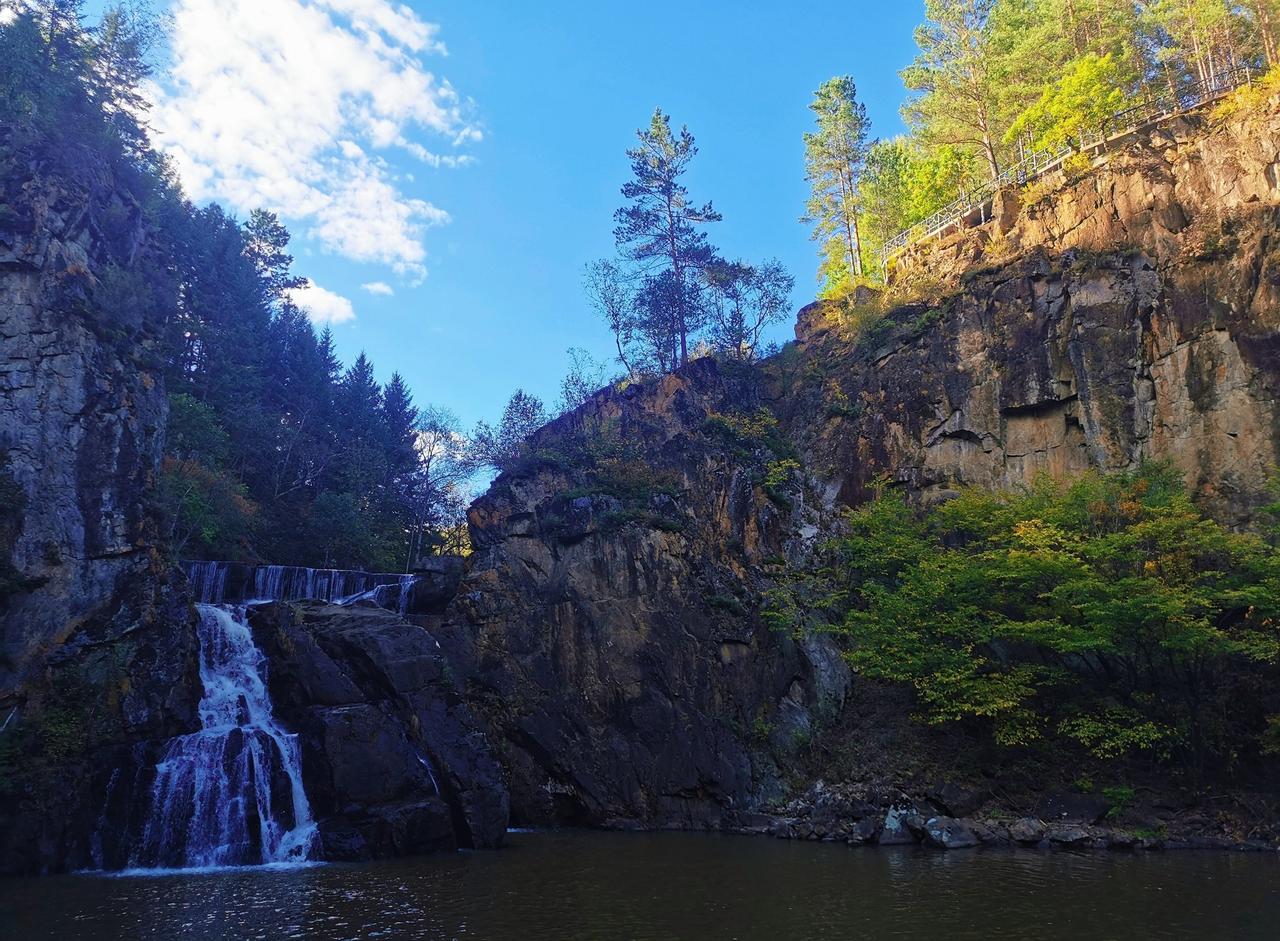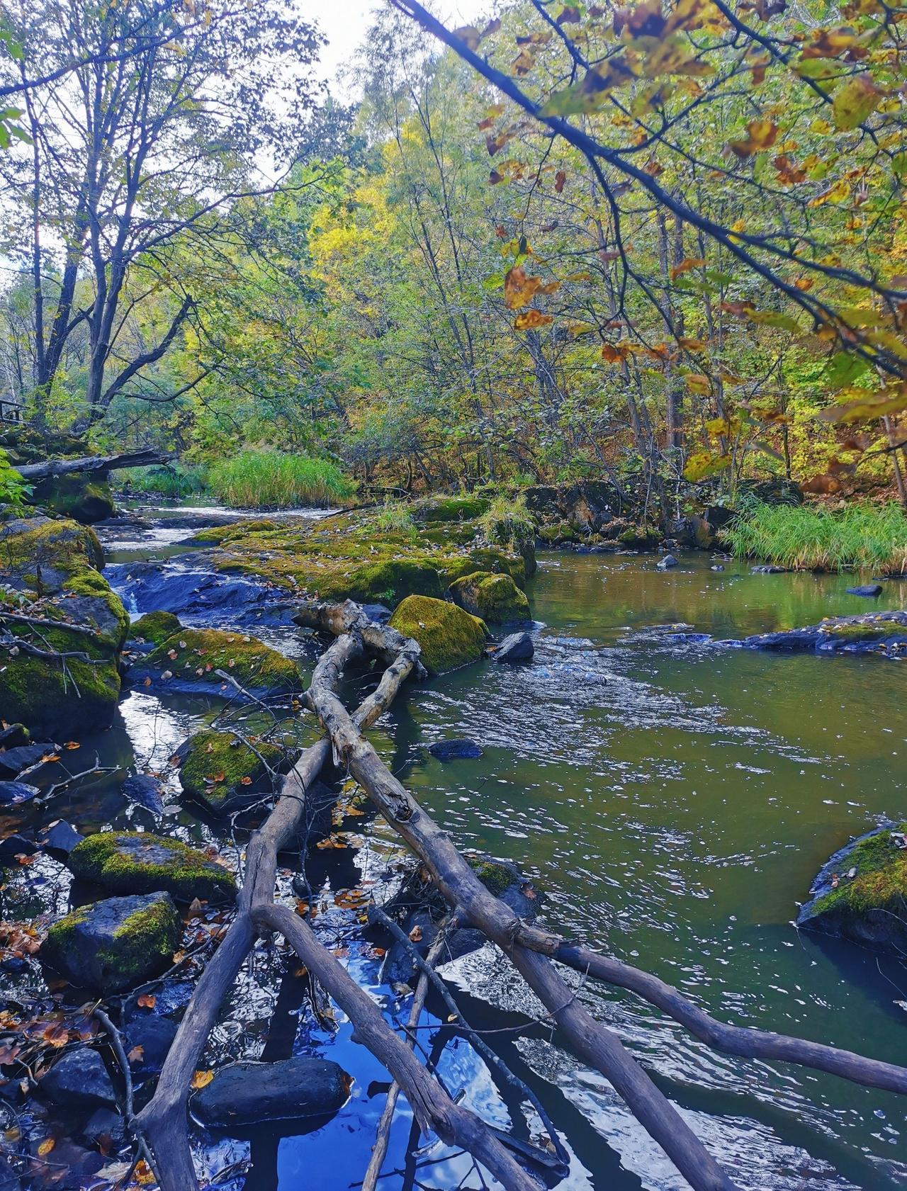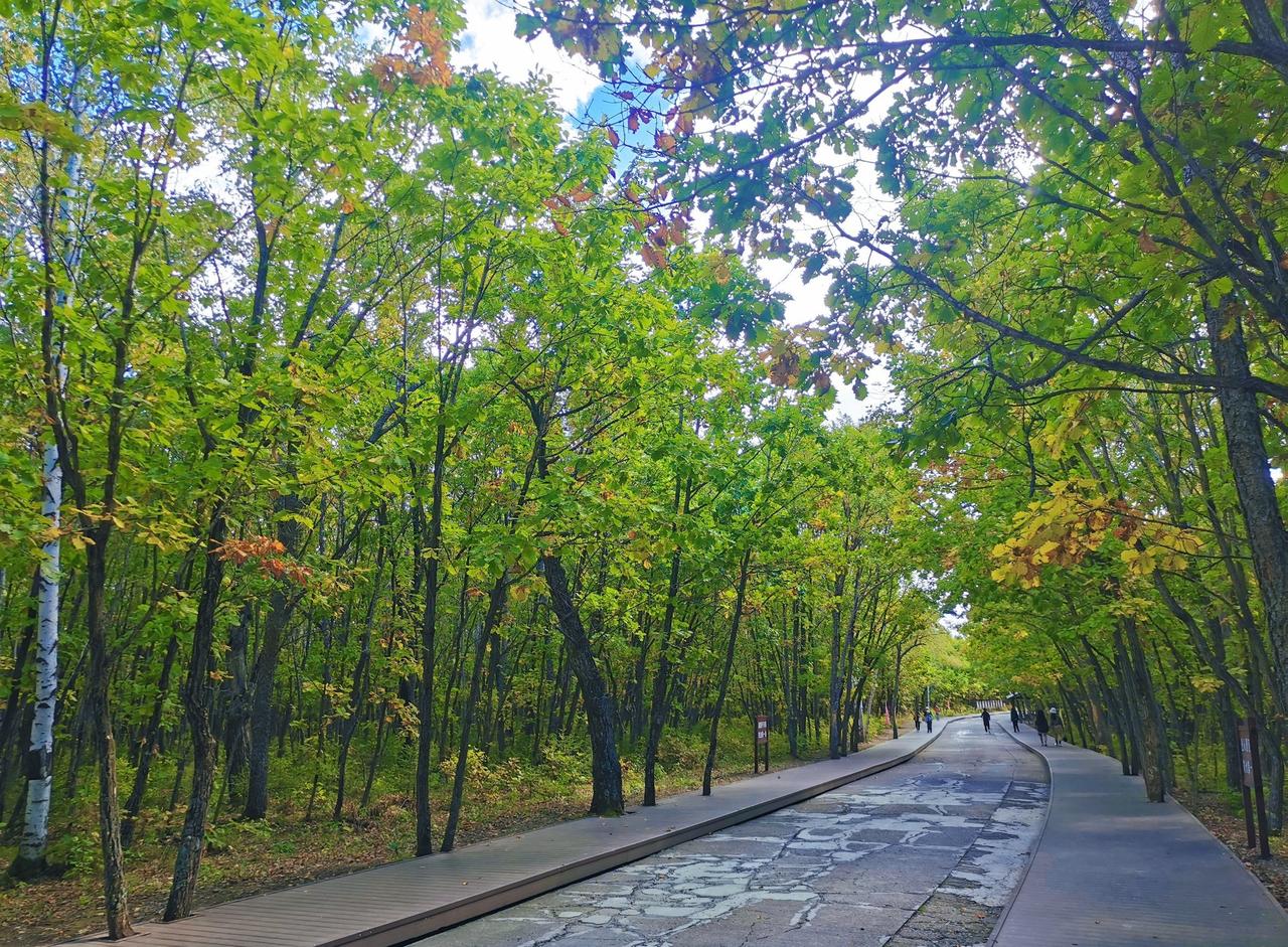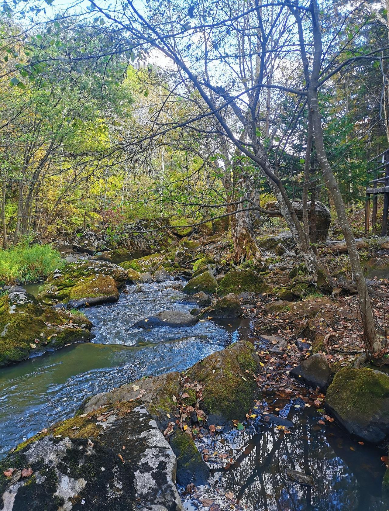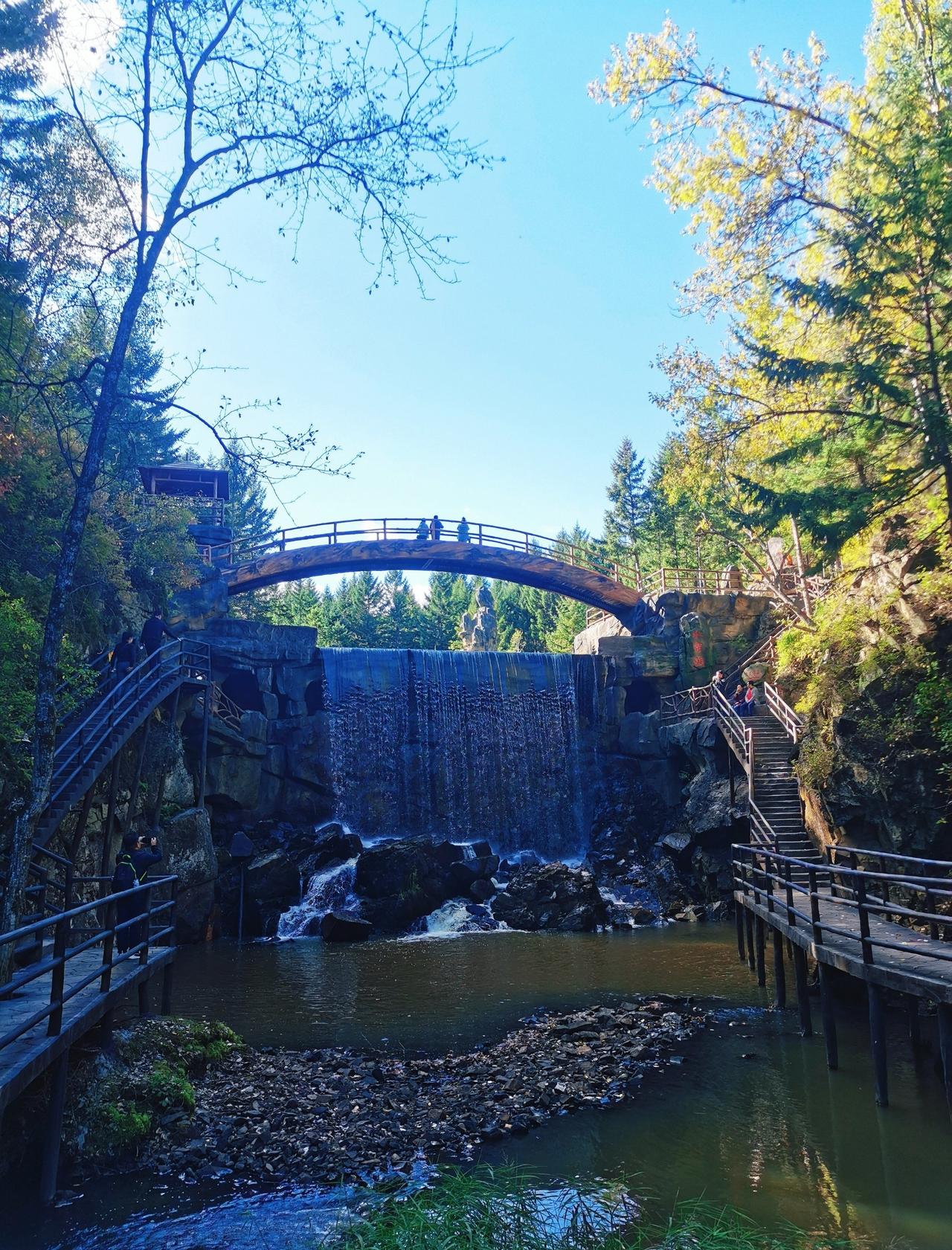 做攻略的时候,看到茅兰沟有北方小九寨之称,峡谷瀑布+翡翠湖水,灵动秀美,景观不同于其他森林公园,所以兴致勃勃的从汤旺县自驾,要来一睹美景,结果,接近景区的国道在维修,基本每50米一个坎坷的过车小道,要连续过20几个,底盘低的轿车真的伤不起[流泪] 好在,有一段路靠近界河,这里水天一色,真的漂亮,被破路创飞的心有被抚慰到一些(p1) 茅兰沟确实跟五营国家森林公园景致有些不同,水石树的组合让整体景色多了很多可看性,景区也比五营更大,但说是小九寨确实言过其实,小水泊的颜色整体比较暗黄或者青绿,并没有九寨沟那种湖蓝色,但好在天气不错,阳光透过茂密的树林洒在身上,在此间漫步,心情是自由自在;走栈道穿过一片白桦树林,空气清新,四周静谧,一切烦恼都烟消云散。 中午在一处凉亭休整,接了溪水来煮自热锅,在山林中吃着热气腾腾的米饭,简直心满意足;水足饭饱后一鼓作气,把剩下的景点一股脑逛了一遍,一路步行出了景区大门,路上途径好几个巨大的刻画少数民族生活情景的雕像,挺有记忆点。