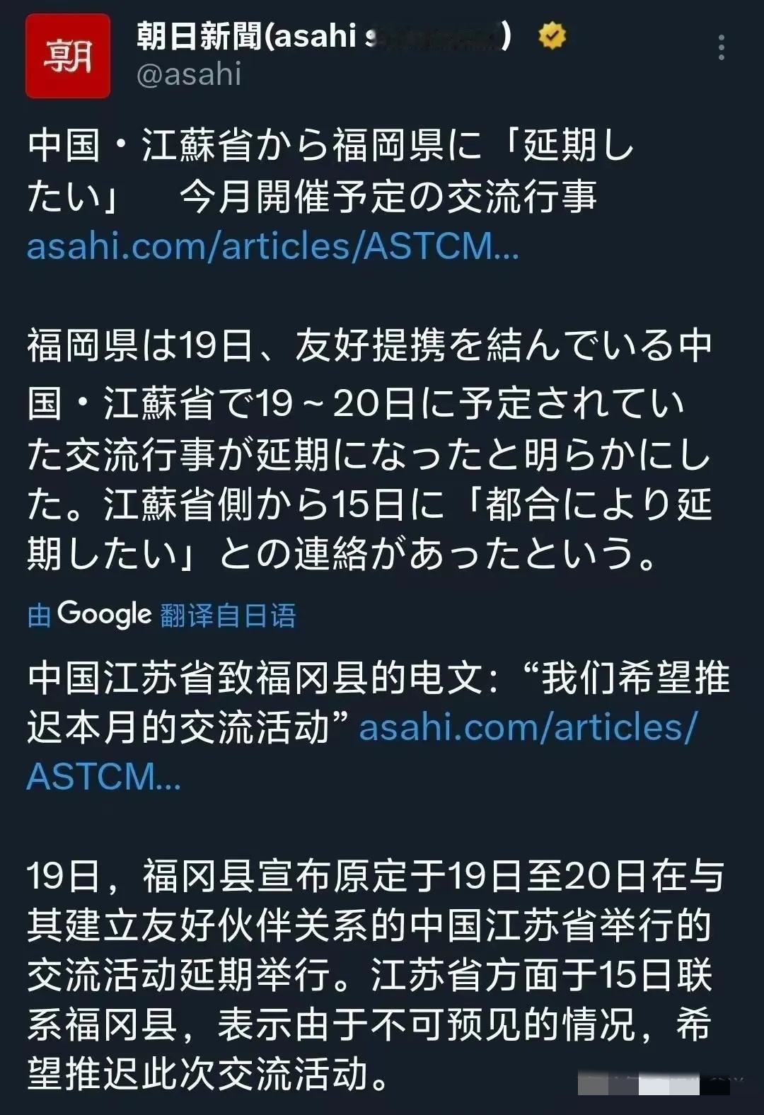 中日之间已经没有“友好”关系了 日本福冈县近日通过社交媒体宣布,中国江苏省向日本福冈县通报,由于不可预见的原因,希望推迟本次活动。 如果不是最近中日关系紧张,原本日本的福冈县和江苏之间会有一场中日友好伙伴关系的交流活动会在江苏省举行,如今碍于两国关系紧急叫停。 在这个节骨眼,不仅是江苏,国内其他城市原本有这个交流计划的都已经取消了,而前些天举行的中日教育交流会则受到不少指指点点。 毕竟不管什么时候,都要以国家利益为重,积极响应国家号召跟着国家的脚步走。如今中日关系如此紧张,源头在于其首相高市早苗在台湾问题上的挑衅言论。 这股寒意从何而来?说白了,还是政治层面出了问题。最近日本政府在台湾问题上的小动作不断,一些高官频频发表挑衅性言论,试图触碰中国的核心利益红线。 特别是配合美国,将台湾问题纳入所谓的“共同关切”,这已经不是简单的口头说说,而是战略层面的试探和施压。 这种举动,直接点燃了民间积压已久的情绪。国家利益高于一切,这不仅仅是一句口号,在当前这种环境下,它成了许多人,乃至许多机构单位在行动时自觉遵守的准则。当国家层面释放出明确的信号时,民间的互动自然也会随之调整,这几乎是必然的反应。 这种反应,很快就从官方交流蔓延到了民间生活。如果你最近刷社交媒体,会发现关于“还要不要去日本旅游”的讨论变得异常激烈。 过去,日本是很多人出境游的首选,樱花、温泉、动漫吸引着无数年轻人。但现在,很多人开始犹豫,甚至在已经订好机票酒店后选择退票。他们不是不向往那些风景,而是觉得在当下这个节骨眼上,去那里消费,心里总有点不是滋味。 这种情绪是真实的,也是可以理解的。它就像一阵风,从看不见的政治高层,吹到了普通人的钱包和假期计划上。一些商业活动也变得敏感起来,比如原定举办的一些日本品牌推广活动,要么低调处理,要么干脆取消,生怕惹上什么麻烦。 其实,回过头看,“友好”这个词,在中日关系之间,似乎一直有点脆弱。它常常像一个漂亮的包装纸,包裹着里面复杂的历史纠葛、现实利益冲突和深刻的民族情绪。 在关系好的时候,大家心照不宣地维持着这个包装,谈合作,谈文化,谈未来。可一旦出现风吹草动,这层包装纸就很容易被撕破,露出底下真实而尖锐的一面。 现在我们所经历的,或许就是这样一个“去包装化”的过程。当官方的“友好”叙事与民间的真实感受和政治现实的碰撞越来越激烈时,这个词汇本身就显得越来越空洞和无力。 过去我们总说,要“以史为鉴,面向未来”,但历史留下的伤痕和现实中的博弈,让“面向未来”这条路走得异常坎坷。 当一个国家的领导人不断在另一个国家的核心利益问题上玩火时,你很难指望两国民众还能像没事人一样谈笑风生,共话“友好”。 江苏与福冈的这次交流推迟,更像是一个信号,它告诉我们,那种表面上的、程序化的“友好”关系,正在被一种更真实、也更紧张的氛围所取代。 这种取代,不是谁突然决定的,而是无数个事件、无数种情绪累积到一定程度后的自然结果。 那么,当“友好”这层外衣被逐渐褪去,中日关系将走向何方?是继续在紧绷的气氛中互相试探,还是应该寻找一种更坦诚、也更具挑战性的新相处模式? 这种新模式或许不再有那么多客套和寒暄,但可能更接近两国关系的真相。对于未来,你又是怎么看的呢?