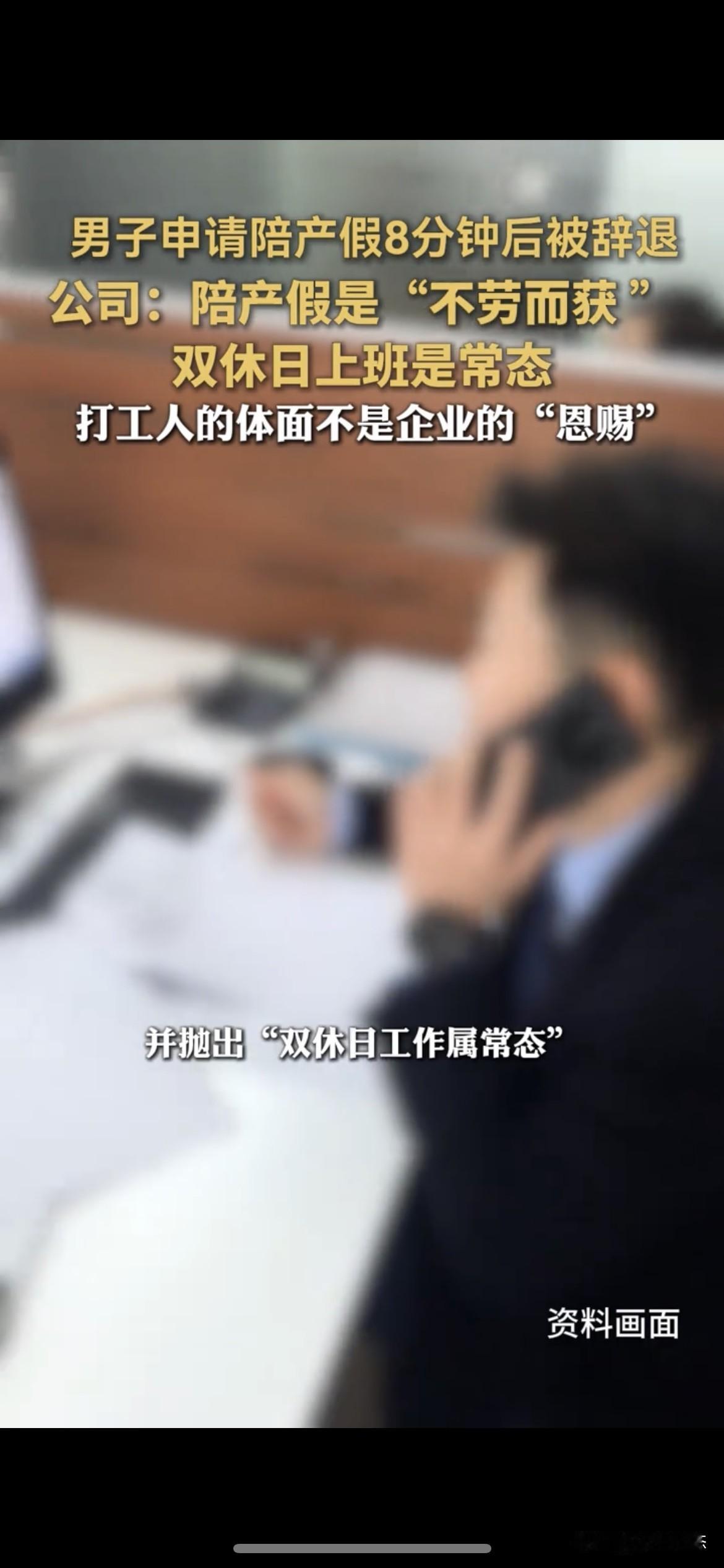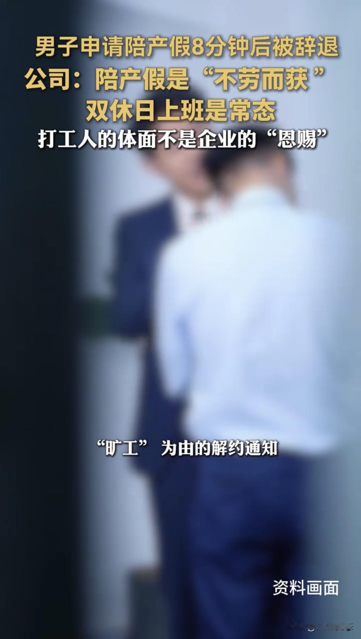 妻子怀孕9个月男子申请陪产假,8分钟后被辞退,公司:陪产假是不劳而获,双休日上班