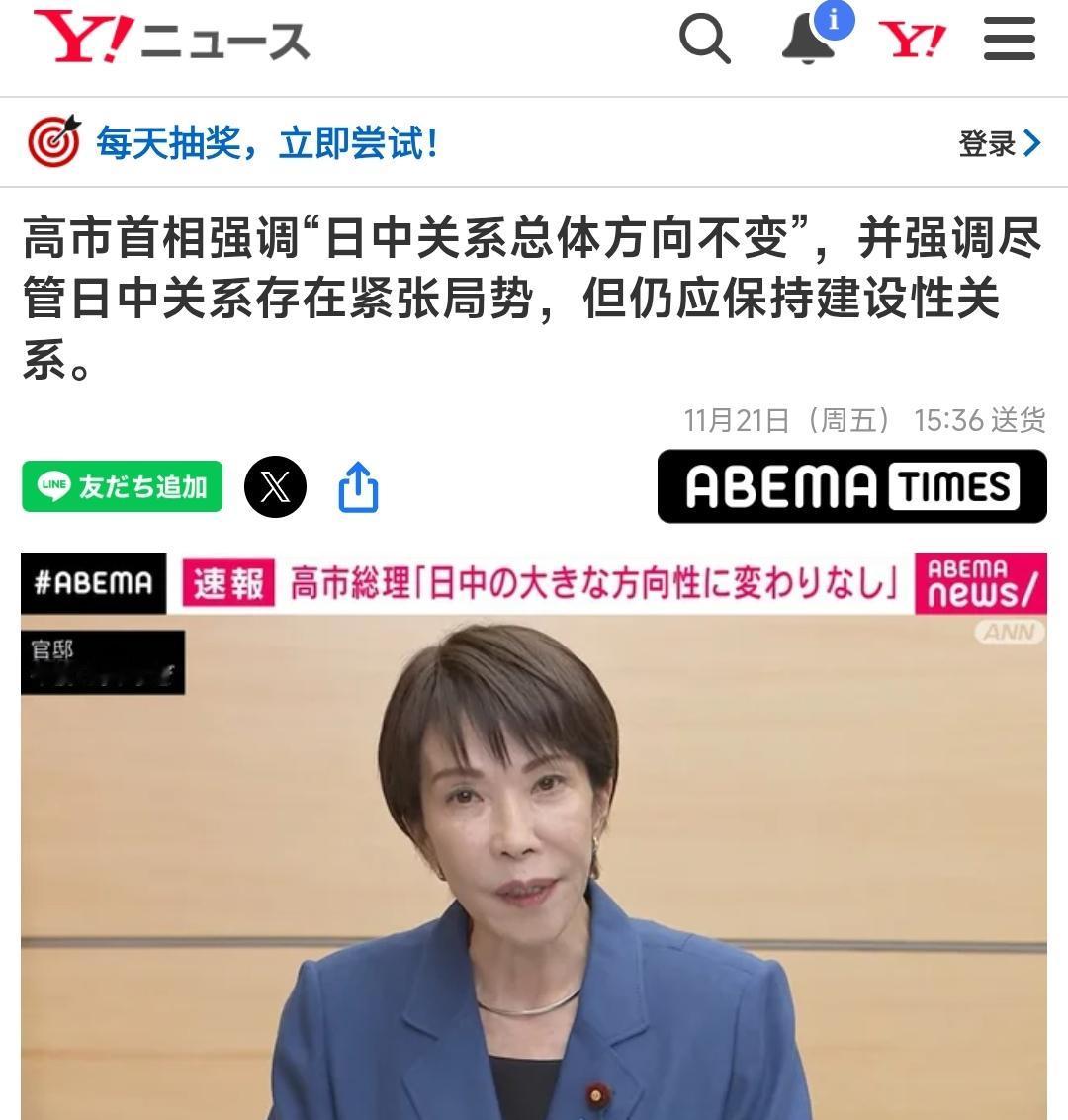 11月21号下午,日本富士电视台发表了对高市早苗的采访,她也打破了近一周以来的沉默,首次对中日关系做出了自己的评价。那么如何看待她的发言以及未来中日关系的发展呢? 高市的发言当中,重点强调了三方面: 第一,就是在上月底中日首脑会晤当中所确定的战略互惠关系的大方向,没有因此而发生变化; 第二,她没有对南非二十国集团峰会期间是否与中方会面作出表态; 第三,她仍然没有收回之前的言论,仍然强调日本政府的立场是一贯的,没有发生变化,将根据具体的情况,来判断台海问题是否属于存亡危机事态。 总的来看,这个发言,展现出了当前高市“既要又要”的一个心态。一方面她不愿意撤回之前的言论,这一点恐怕已经难以改变了;另一方面她又同时强调中日之间战略互惠关系的定位,显然是希望中国往前看,把过去的这一些争议给放下。这其实呼应了昨天新加坡总理黄循财发言当中的核心观点。 从这个角度来看,中日之间紧张的关系恐怕还会持续一段时间。高市早苗自恃有国内极高的支持率,以及国际上一些国家的支持,比如美国、新加坡或者其他一些东南亚国家。因此显得有些肆无忌惮,希望中国先做出让步。 而对于中方来说,恐怕也要做好中长期博弈的准备,同时要注意和改善我们的方式方法,把矛头的焦点对准日本,同时又避免引起周边,尤其是东南亚一些国家的担忧和反弹。这恐怕也会极大地考验我们的外交智慧和技巧。