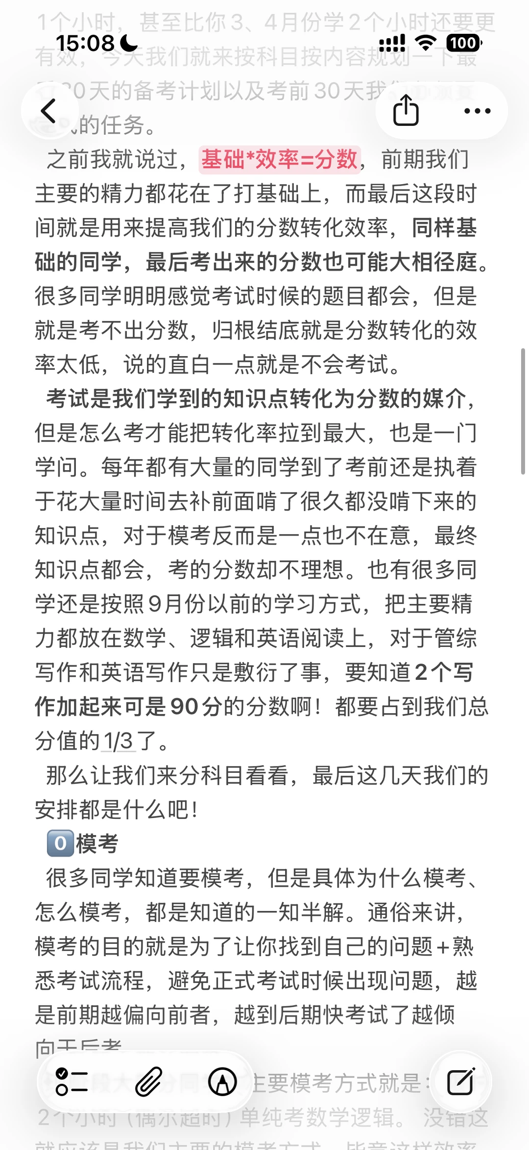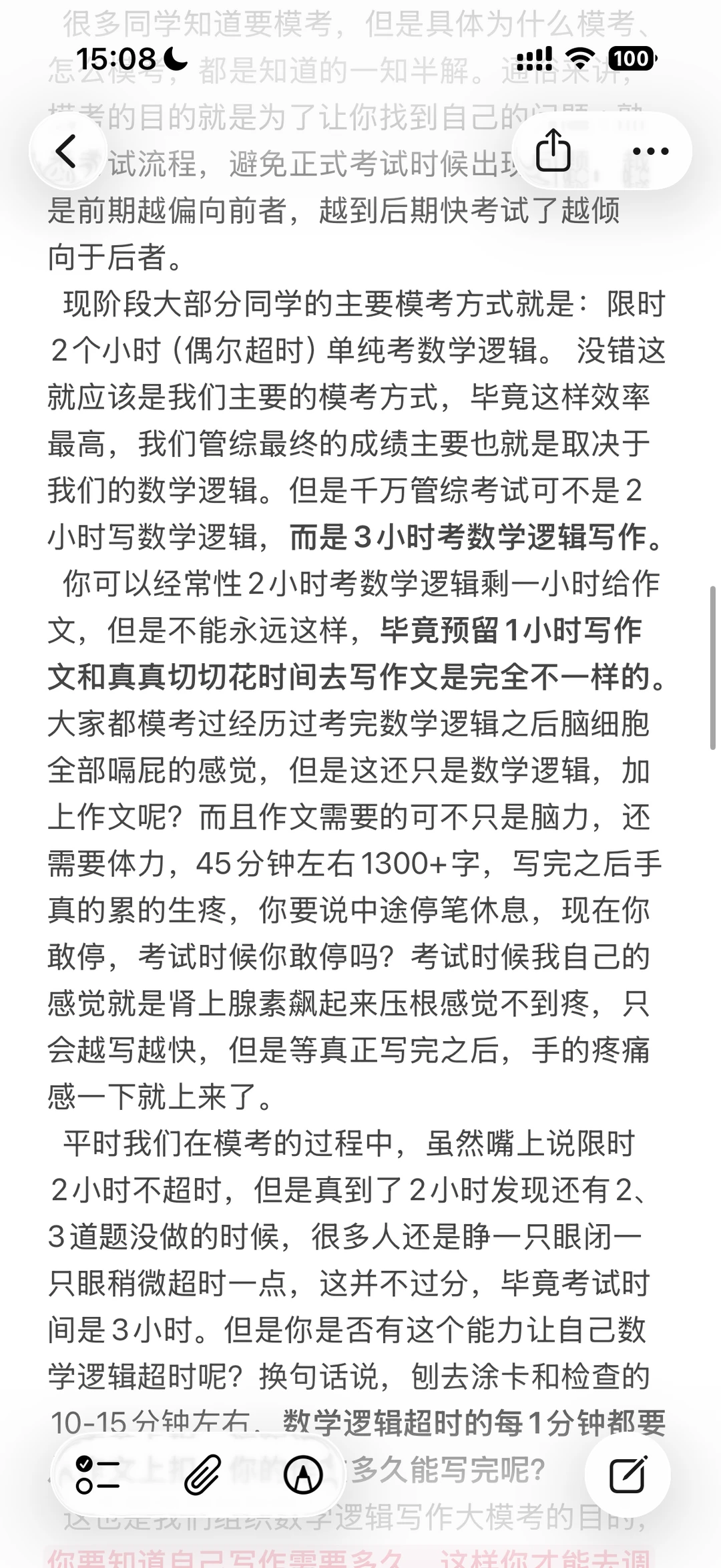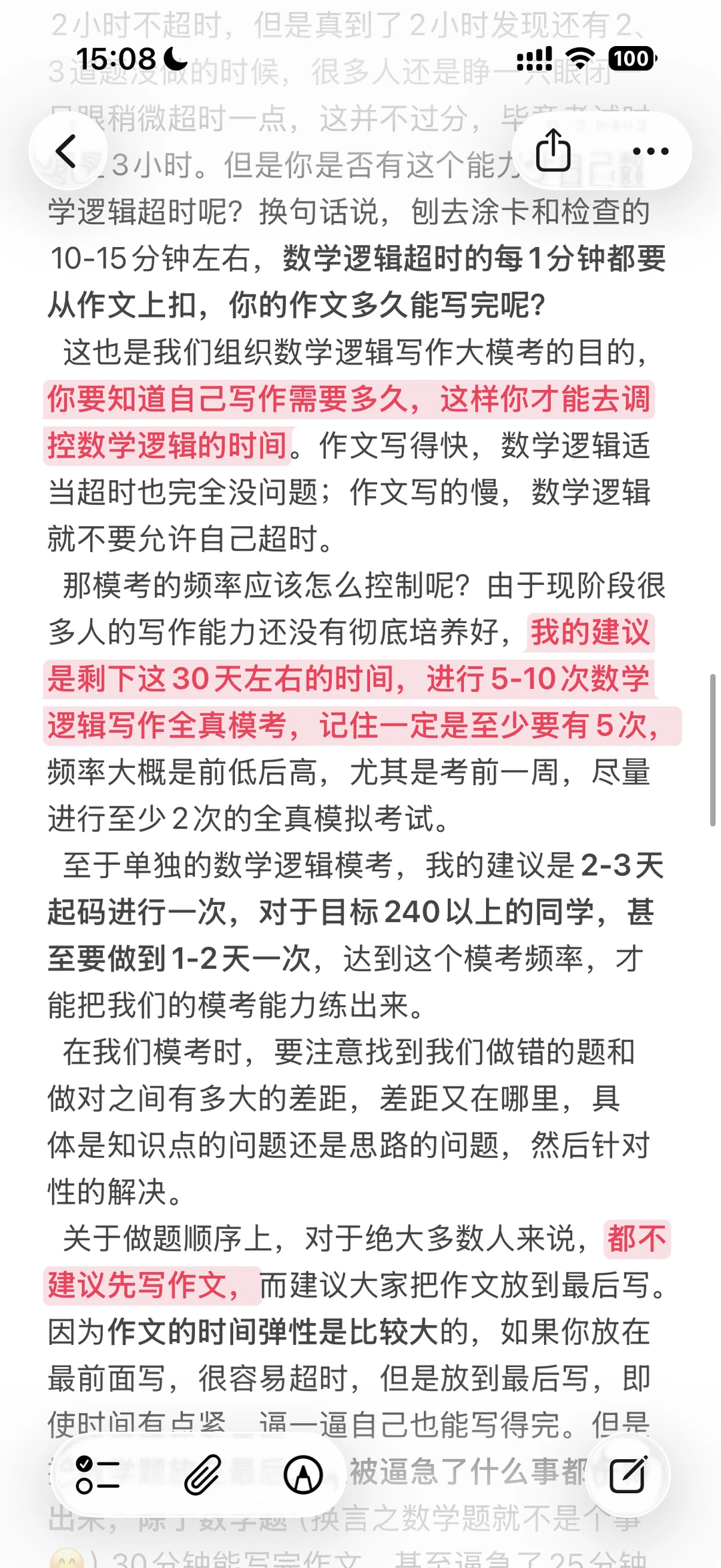 2. 全真3小时模考(数学+逻辑+作文):至少5次,建议5–10次