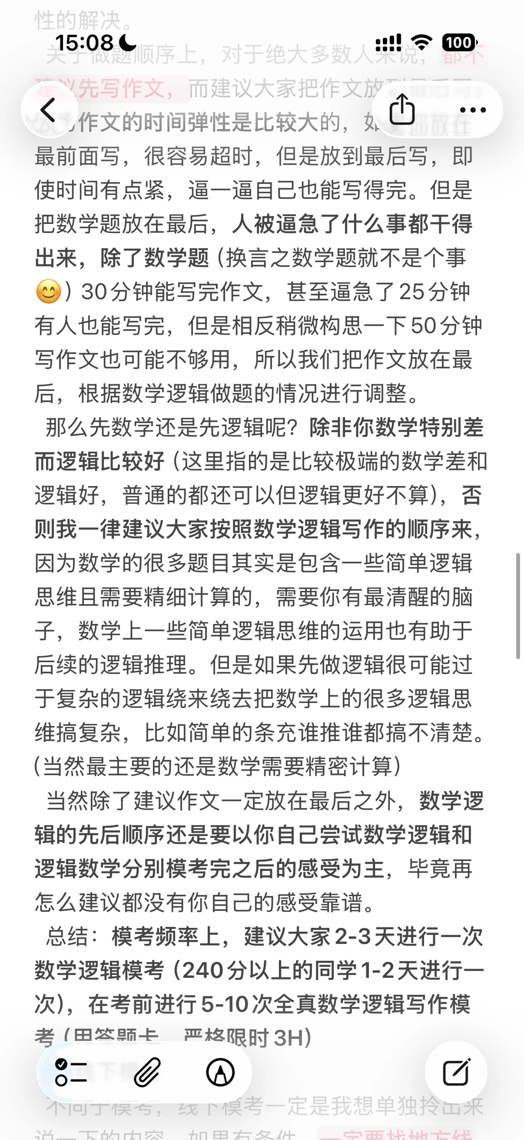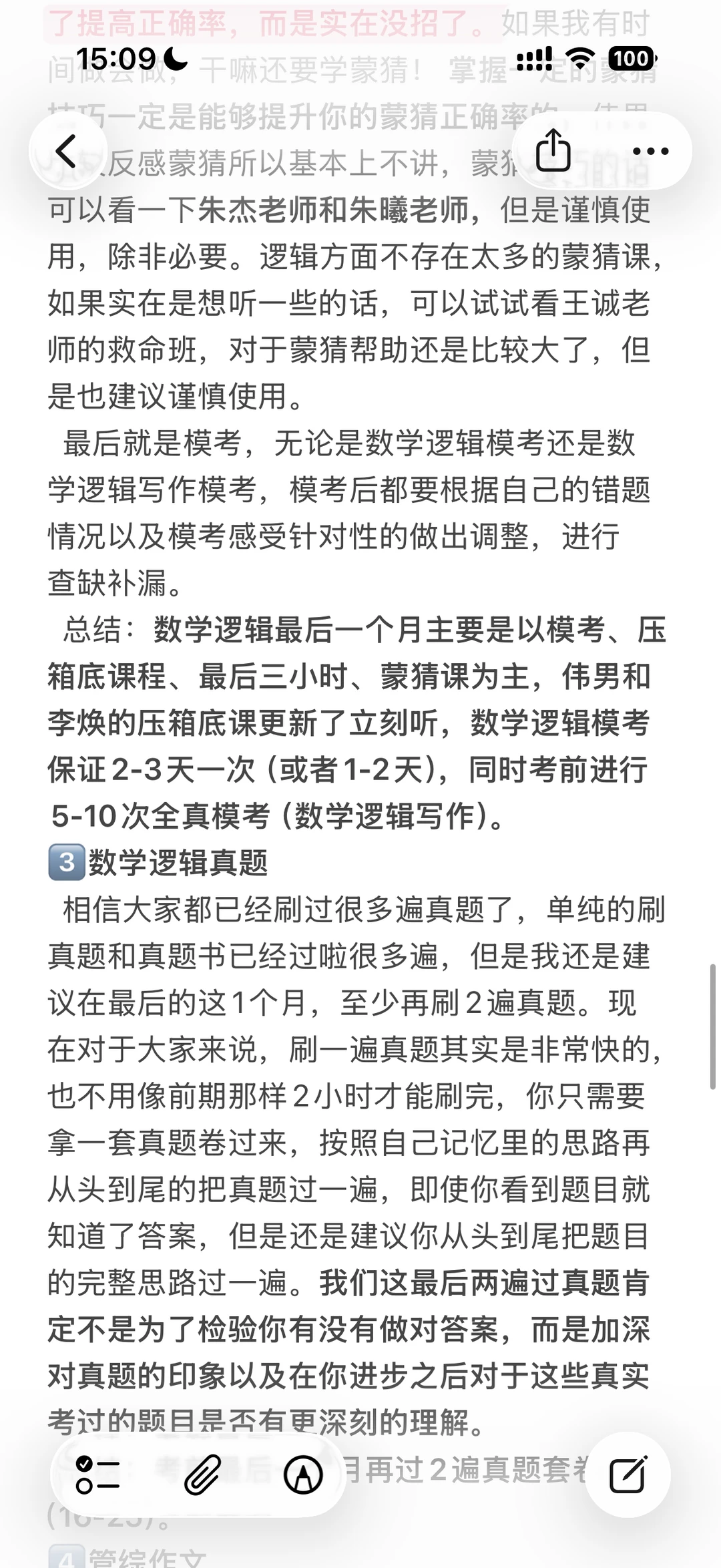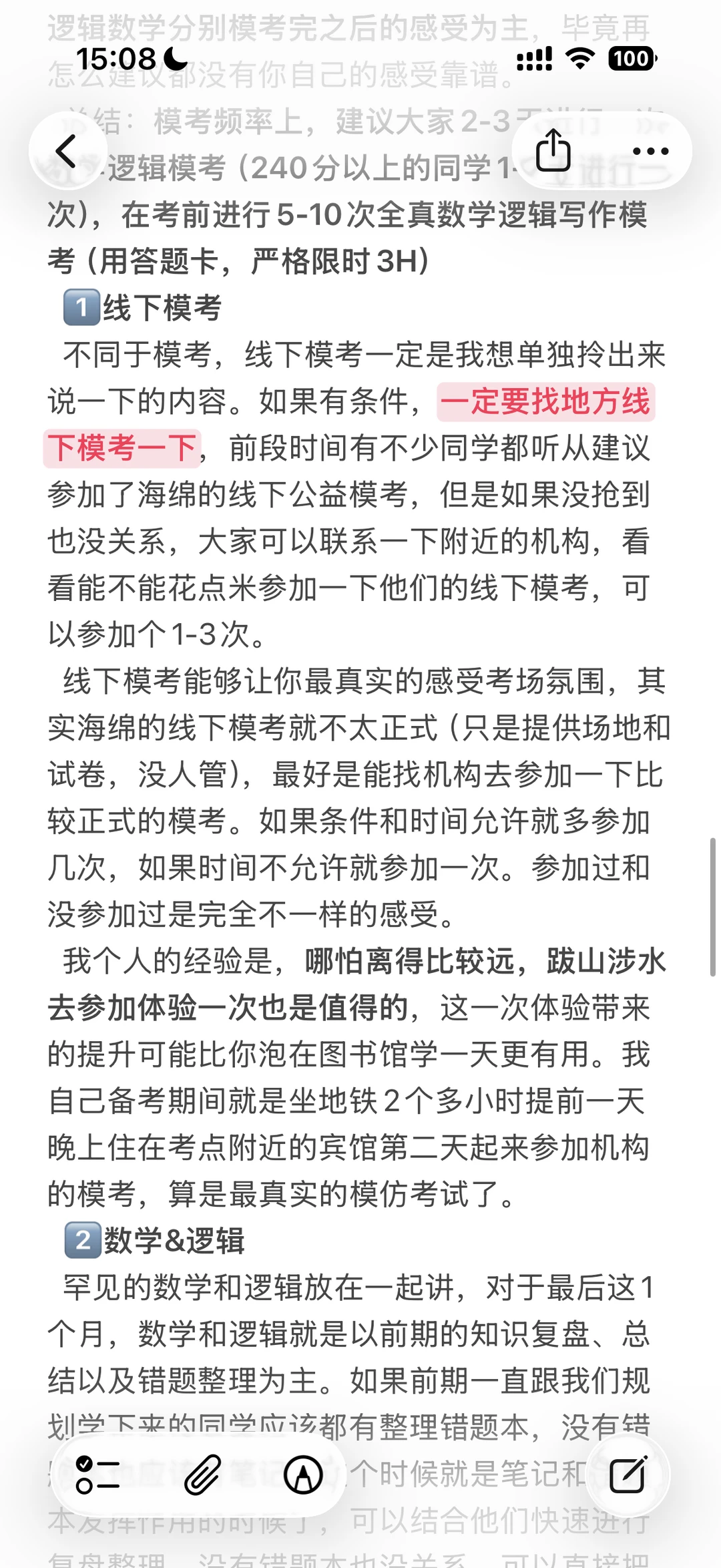 1. 数学逻辑模考:2–3天一次(目标240+:1–2天一次)