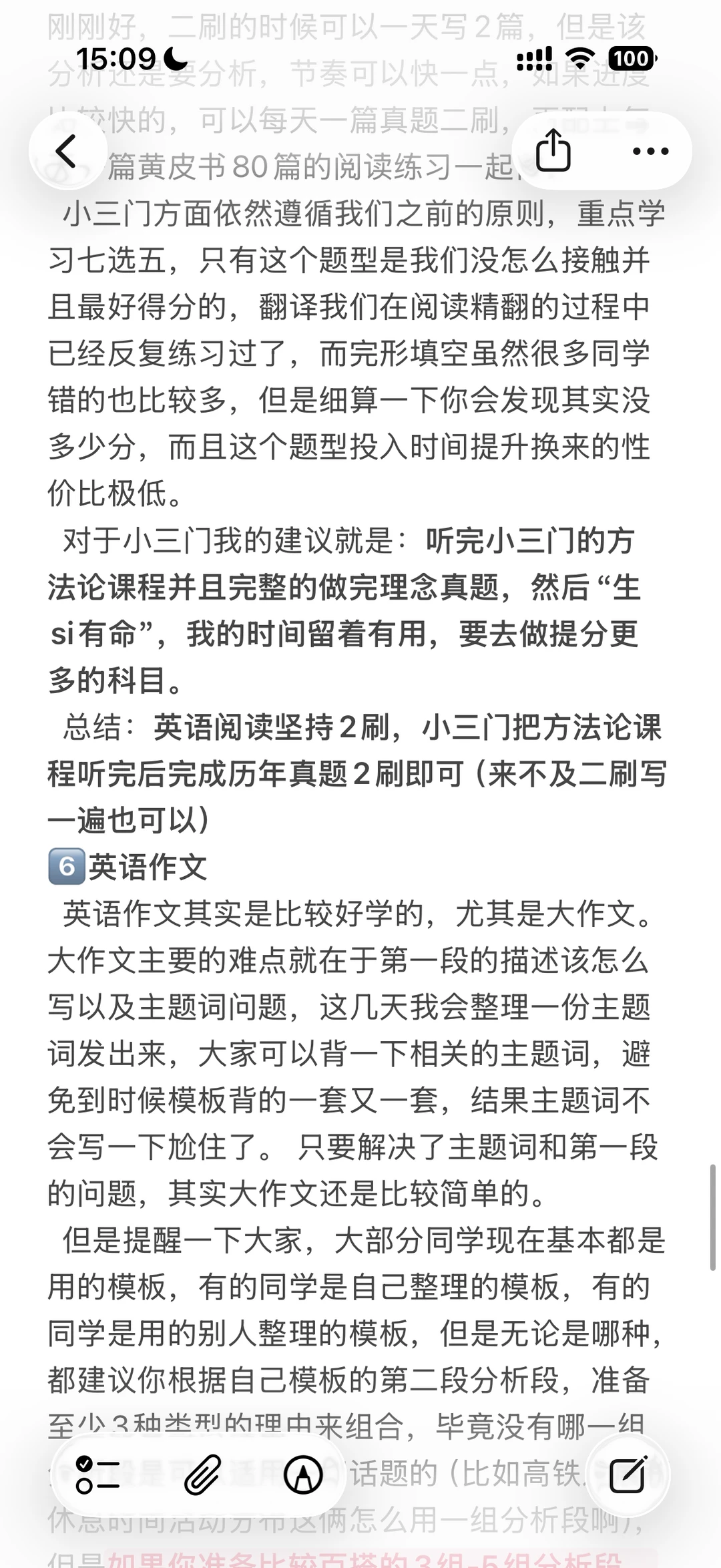 18. 小三门必须完成:七选五真题+方法论;翻译靠阅读精翻;完形方法论即可