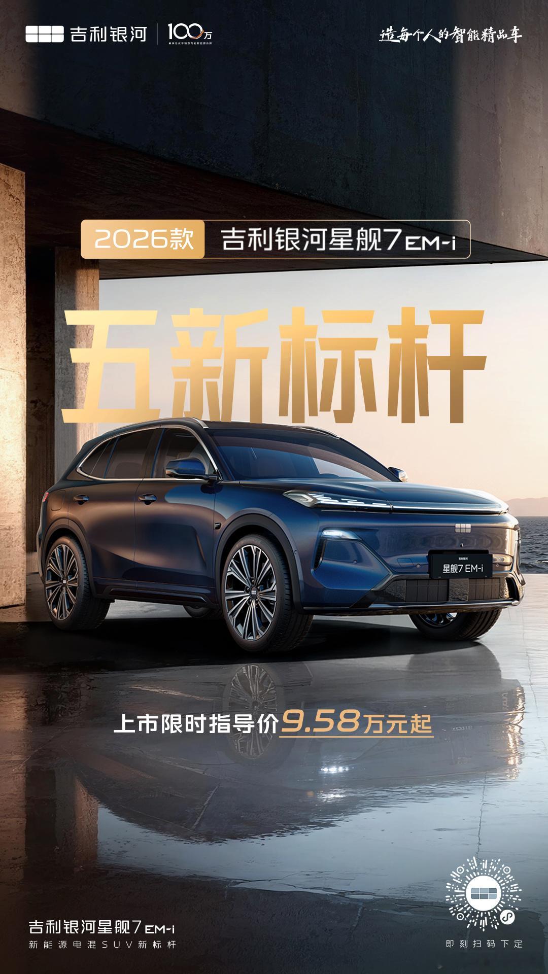 2026款吉利银河星舰7EM-i全面升级!焕新上市!上市限时指导价9.58万元起