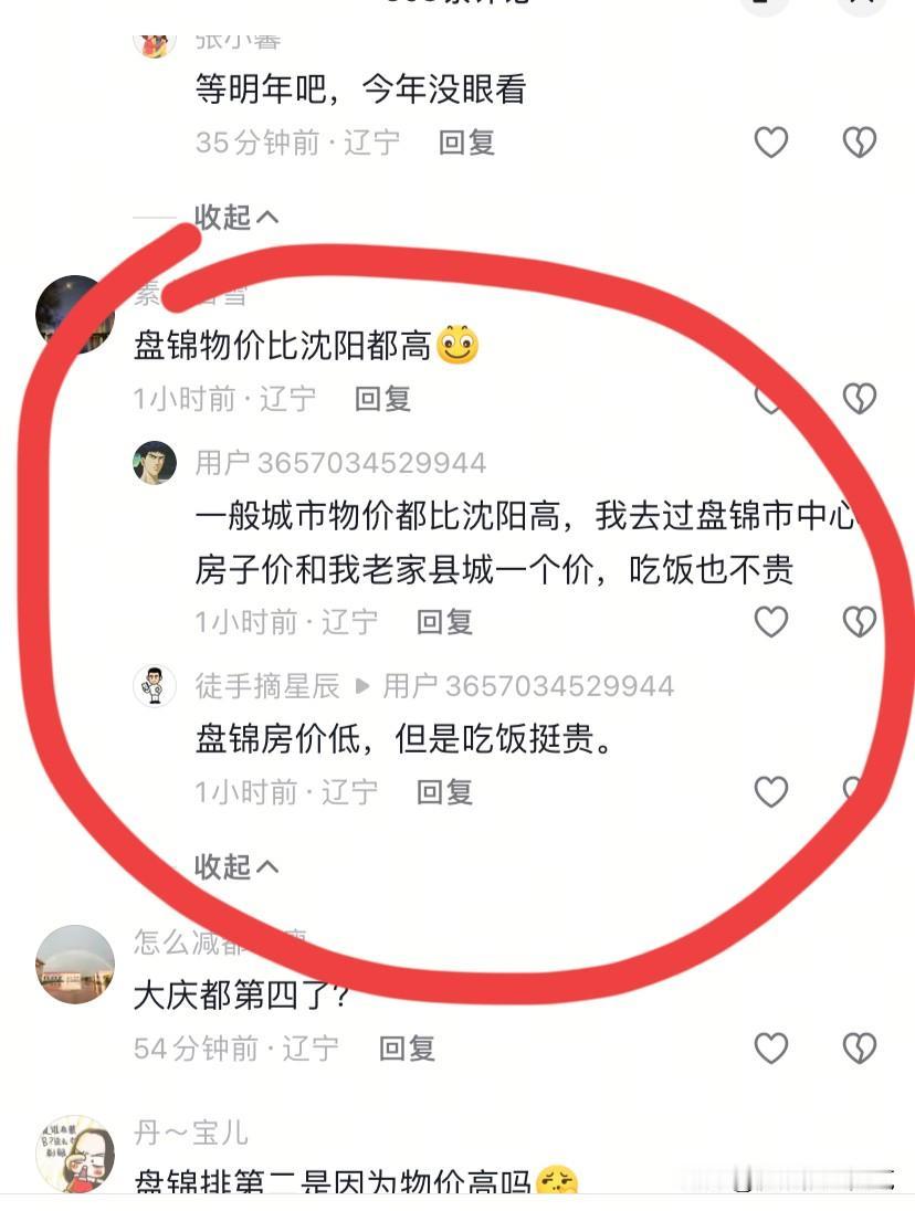盘锦物价真的比沈阳高么? 网友回复:“我们盘锦你来过吗?不用别的你看看我们的公路,省内第一,没有比的上盘锦的,我去过不少城市,公路和盘锦没法比,你在看看盘锦的农村,省内有几个能比的上的,你开车走盘锦,再去营口,公路就是俩个世界,盘锦消费比沈阳高,大连几乎都没法比,但是盘锦房价不是很高,盘锦人的收入很好,老百姓都有退休工资,农场的很多,退休工资都快三千了,不信你去问问,盘锦还有油田,辽河油田人口在四十多万,工资也很好,所以盘锦很强,懂吗。”
