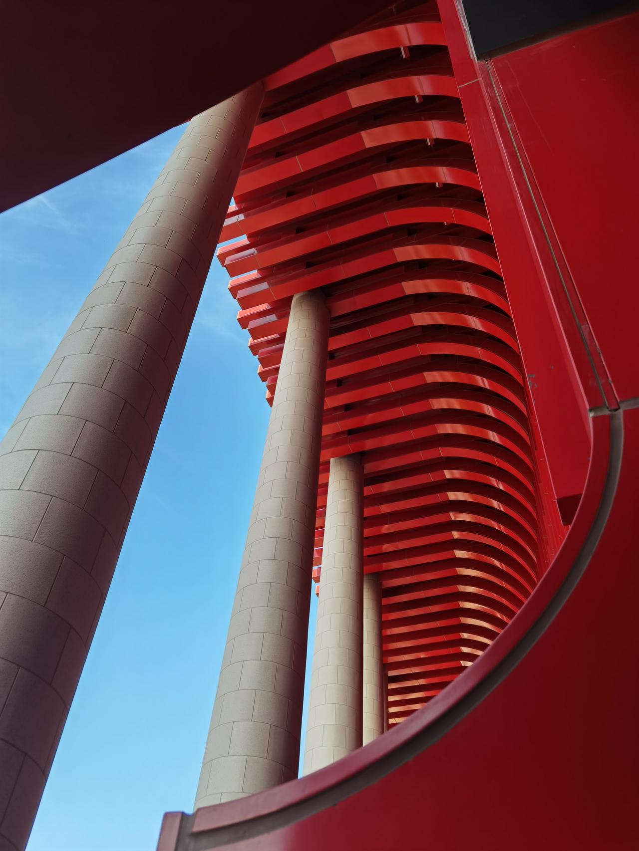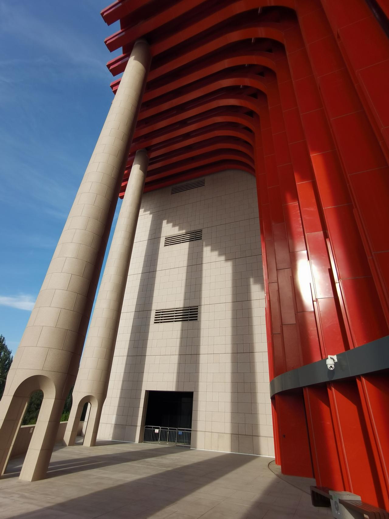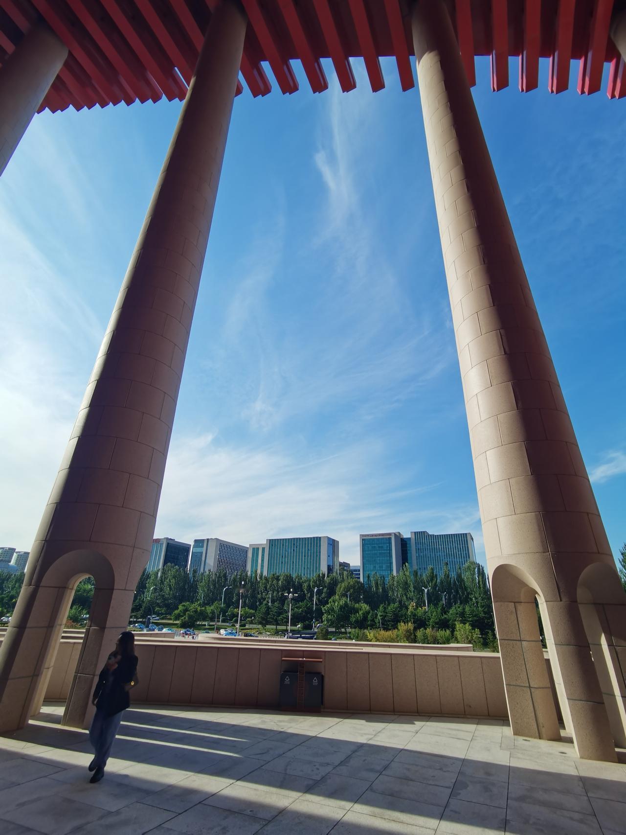 国内省级博物馆基本都去过了,感觉内蒙古博物院是全国博物馆外形最美的。 内蒙古博物院的外形融合了草原文化元素与现代建筑理念,兼具文化内涵与视觉美感。其建筑采用新中式古典风格,正面22根灰白色巨型石柱并排而立,串联成走廊,撑起整个建筑的轮廓。建筑外立面采用红色主色调,反应出蒙古族对红色的崇尚,寓意温暖、活力与延续,在视觉效果上也极具冲击力。下午四点左右拍照最理想,光线斜射会形成美丽的光影。 如果是外地的游客,建议在呼和浩特东站下车,步行去很方便,行程十多分钟即到。车站出来到王府井奥莱,路边有一个人行过街天桥,下桥就看到内蒙古博物院了。