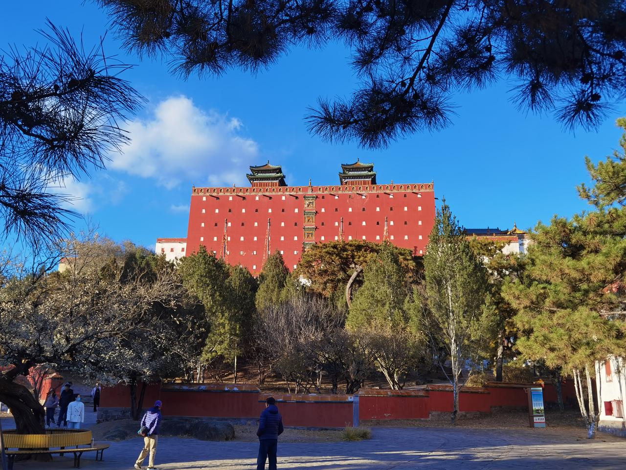 承德归来不看庙,普陀宗乘之庙是其中规模最大、最为宏伟壮观的一座。 普陀宗乘”是藏语“布达拉”的意译,所以该庙也被称为“小布达拉宫”。该庙建于1767年至1771年,是乾隆皇帝为庆祝自己60寿辰和母亲80寿辰。其汉藏合璧的建筑形制既展现了“天下一统”的气度,也向各民族传递“多元一体”的政治理念。由于其是皇家寺庙,正值清朝鼎盛时期,因此寺庙修建的大气恢宏 ,也体现了我国古代建筑的最高水平。 初冬下午,天蓝云白,阳光和煦,走在普陀宗盛之庙,欣赏一下建筑的宏伟,感受一下心境的放松,很惬意。