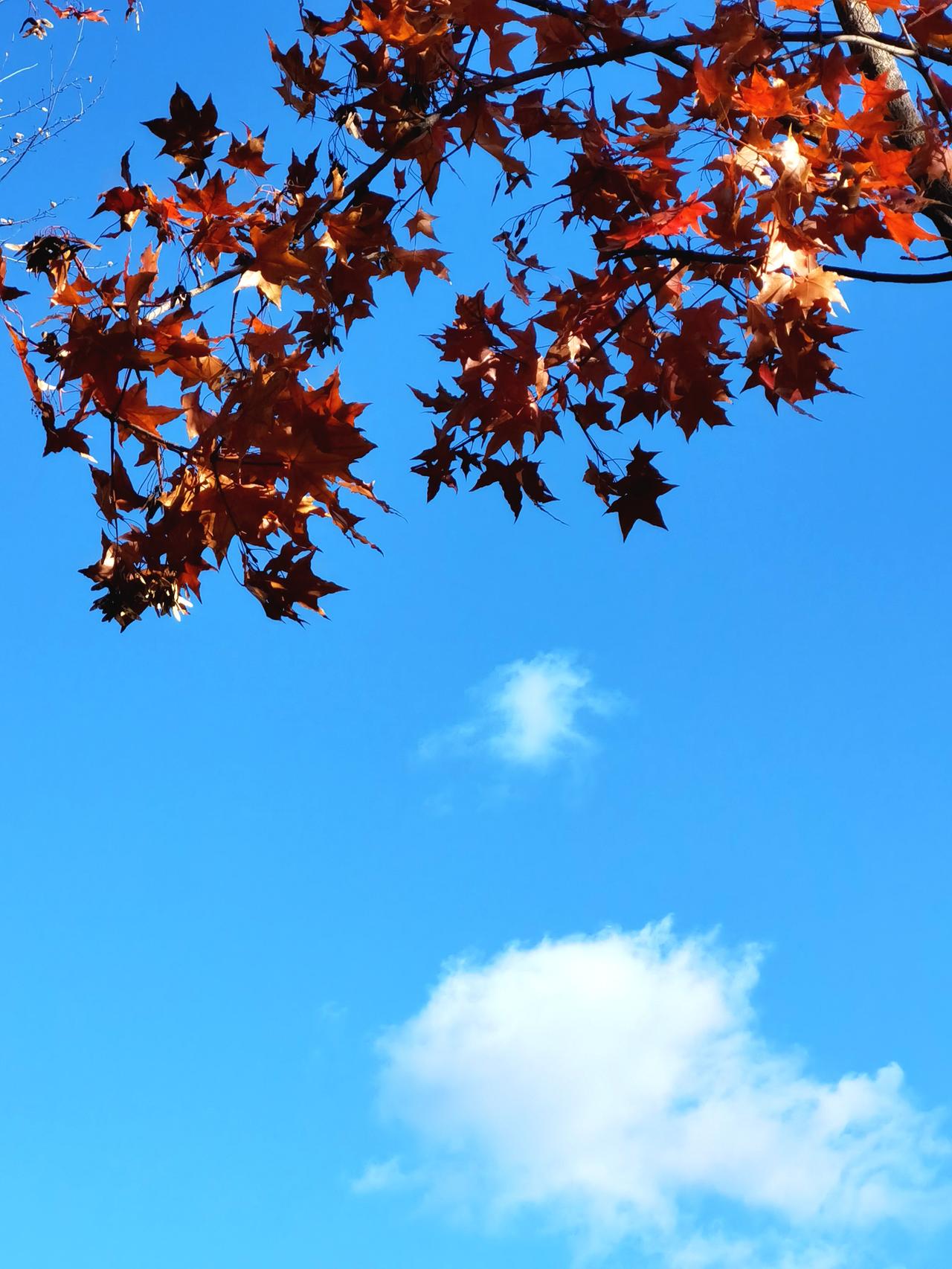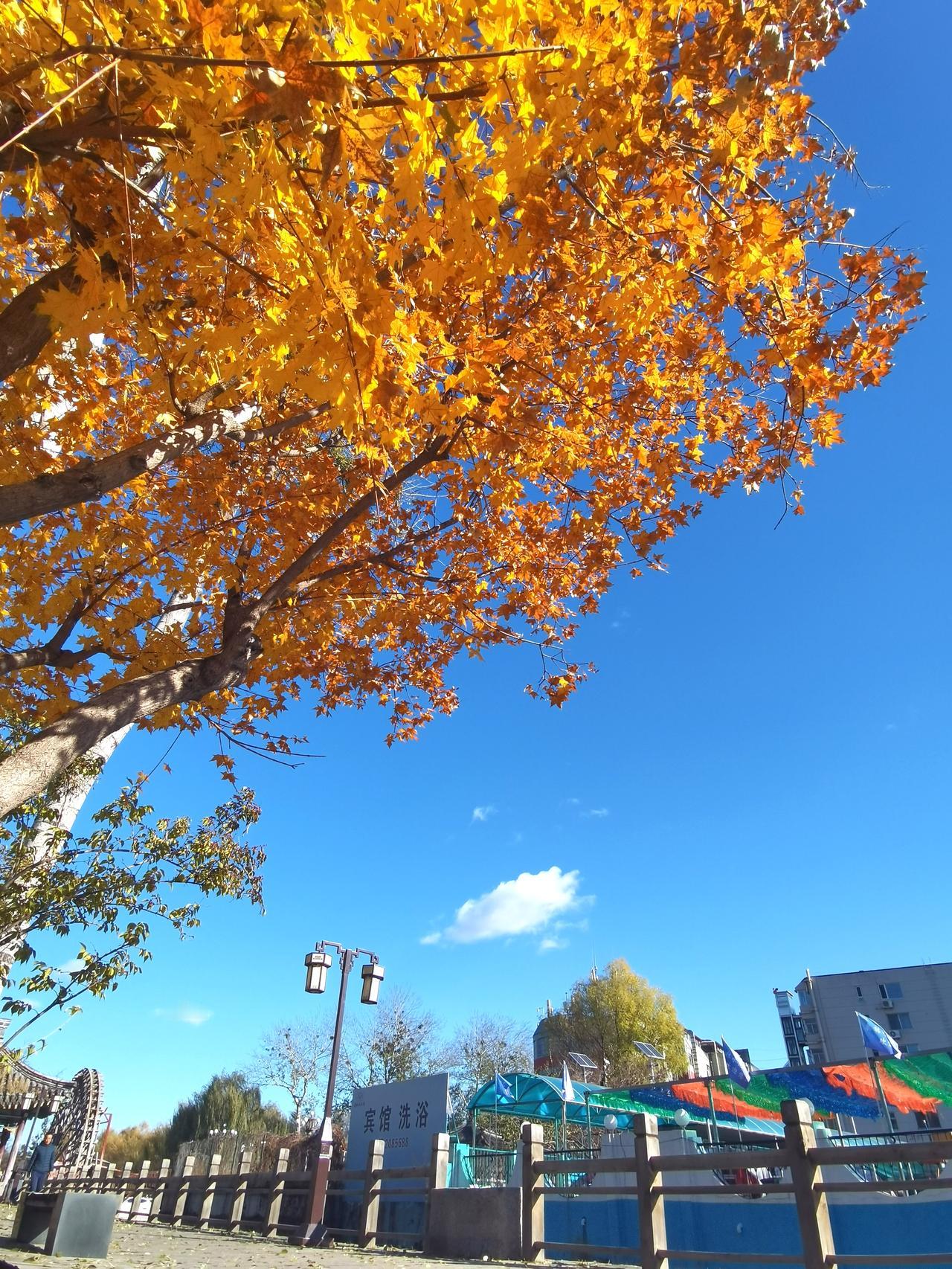 抓住秋天的尾巴,留住秋天味道。 承德十一月一日进入供热期,冬天来临了 ,树叶也开始落得差不多了。但仍有生命力顽强的树种,倔强的要把秋景留住。金黄黄的树叶,映衬着蓝汪汪的天空,真是令人心旷神怡。 地点在小热河广场和金龙购物广场之间的迎水坝附近,秋风扫落叶,也开始落叶了,要看抓紧时间去。