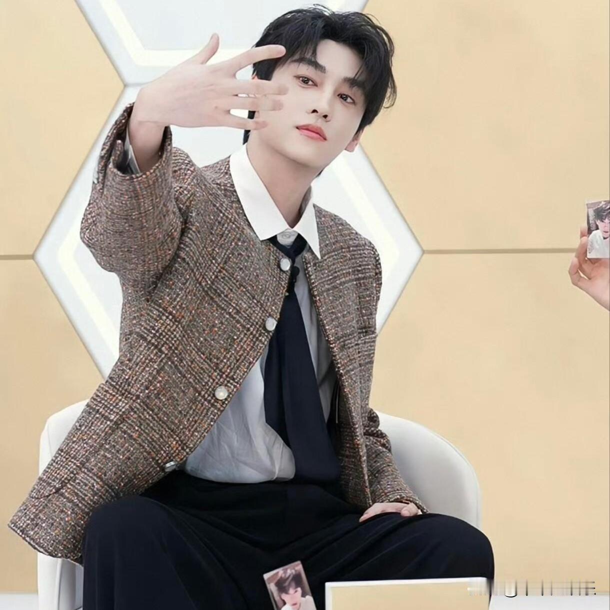 田栩宁以一袭浅杏色小香风套装惊艳亮相,瞬间成为镜头焦点。粗花呢面料交织着细腻纹理,短款剪裁勾勒出利落腰线,金属链条扣饰在光影下流转出低调奢华。她摒弃传统套装搭配,选择用微喇牛仔裤平衡精致感,脚踩白色乐福鞋更显随性优雅。 这种“去名媛化”的混搭思路,既保留了小香风经典的法式基因,又通过休闲元素消解了距离感。田栩宁的演绎证明,小香风从不是刻板的“人间富贵花”模板,当经典廓形遇上年轻化表达,便能在优雅与松弛间找到完美平衡。