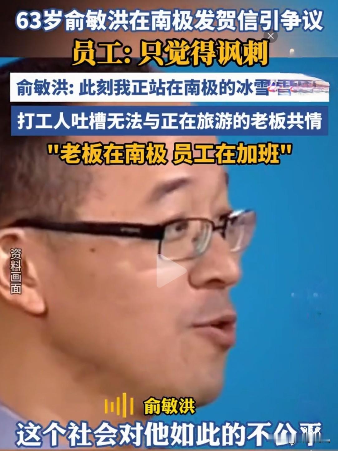 俞敏洪因11月16日发给新东方全体员工的32周年庆内部信,引发了不少打工人的不满与共情吐槽,算是惹怒了不少打工人。 这封内部信是俞敏洪身在南极时所发,信中多次描绘南极风光,还17次提到“我”,用企鹅相互扶持类比团队精神 。而此时不少新东方员工正为KPI和业绩忙碌加班,这种场景反差让不少员工觉得讽刺,有员工吐槽无法共情,还有人写下“回信”表达对工作压力的不满,后续俞敏洪连发10条南极游玩视频,其行程所乘邮轮人均花费30万起、最高达148万的消息传开后,进一步刺激了打工人。(图源网络) 众多非新东方的打工人也纷纷代入自身,吐槽老板的“诗和远方”与员工的加班日常对比太过鲜明,认为这封充满鸡汤味的信件满是老板的自我感动,缺乏对员工的实际体恤。