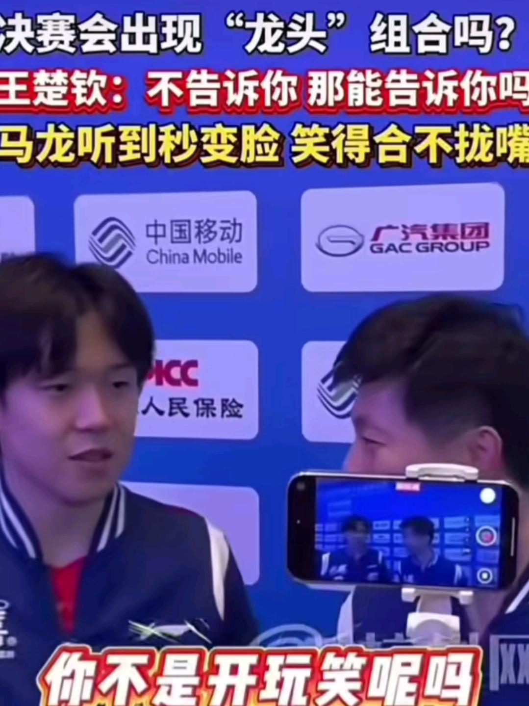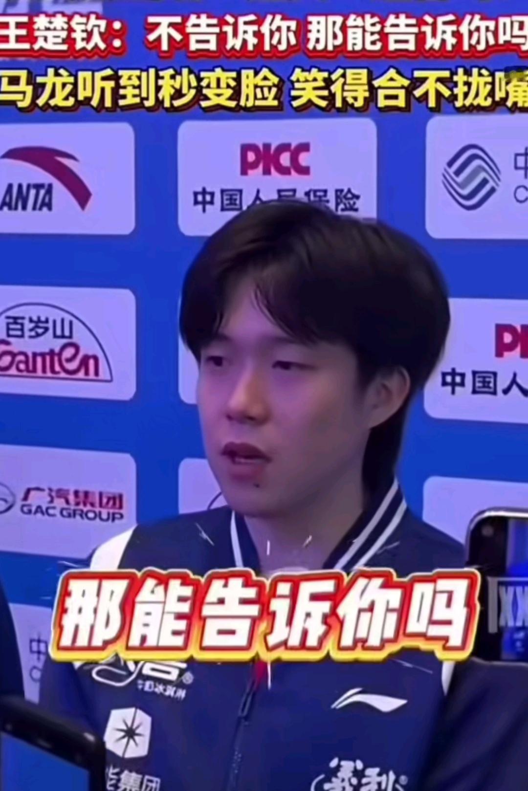 想要龙队心情好,身边楚钦少不了,北京队男团半决赛3:0广东队晋级决赛后的记者采访,有记者想打探北京队男团半决赛的排兵布阵,楚钦的三连句“不告诉你,那能告诉你吗!你不是开玩笑呢吗!”本来一脸严肃龙队,听了楚钦的三连句,一秒变脸,怼记者还得我弟,大赛前的排兵布阵是你可以打探的消息吗!可以好奇,可以有想法,但是,真的不要问,问了也是白问。 记得也是昨天晚上,有一家媒体记者问马龙,借体育总局的一篇文章说事,说马龙最大的遗憾!马龙已经预测到记者的问题,就是北京队已经有32年时间没有拿到过全运会男团这块金牌了,没有等待记者说完,马龙就回答,没有遗憾。希望北京队没有遗憾,希望在龙队的带领下,楚钦和黄油可以为北京队拿下全运会男团这块金牌,北京队加油!