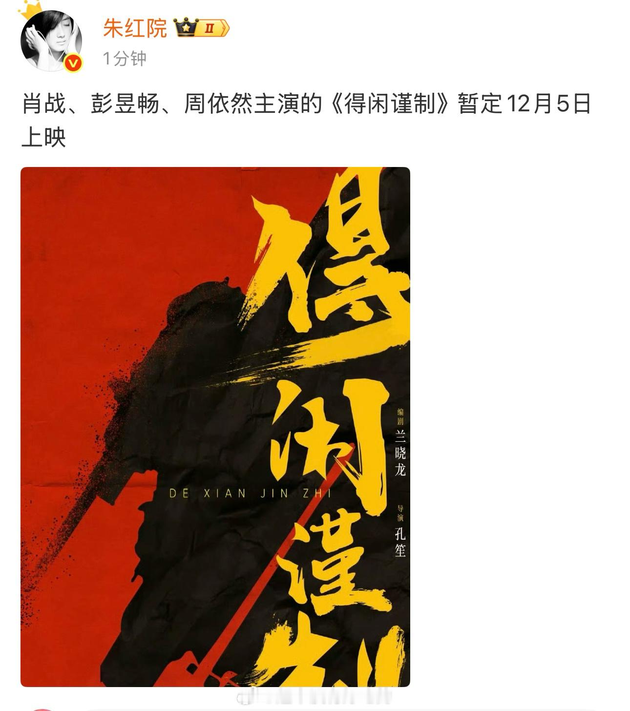 从瓜主、电影博主、粉丝的气氛看,《得闲谨制》下月初上映应该是八九不离十了[呲牙笑]