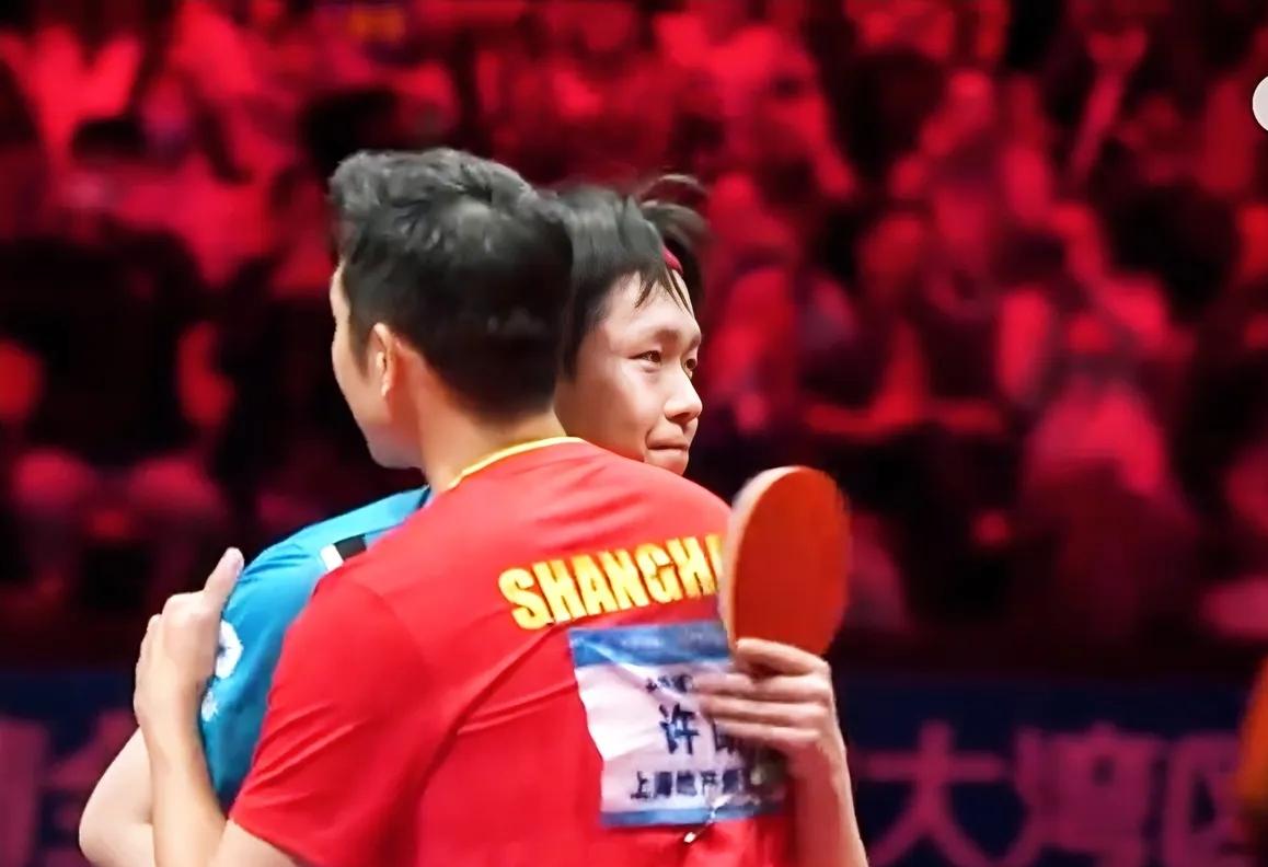 男团比赛许昕虽输给王楚钦,但赛后两个小细节真的暖到心坎里! 第一个是王楚钦赢球后