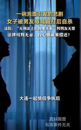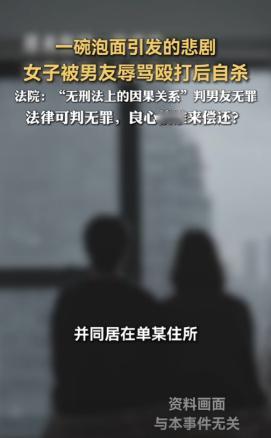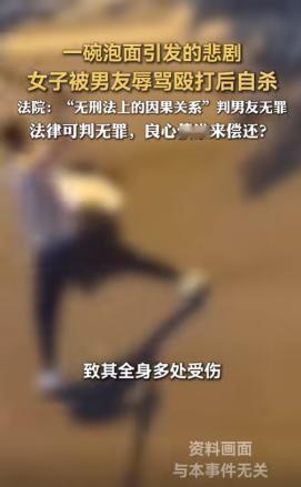 “悲剧还是发生了!”2024年4月,辽宁,一男子让女友给他煮方便面,女友拒绝,男子不满,摔门而去,女友出去追赶,男子将女友拽倒殴打,导致女友多处受伤,回到家后,女子自杀身亡,法院判处该男子无罪。网友:恋爱都要用命去谈吗? 在谈恋爱过程中,情侣之间难免会发生争吵,但是不管吵的多激烈,也要记住伤人的话不可以随便说,毕竟,谁也没法预料哪次会成为失控的最后一根稻草,造成无法挽回的后果。 事发当晚,酒后回家的单某让女友为他煮方便面吃,可是女友表示自己刚洗完澡,煮方便面身上就会有一股味道,然后拒绝了单某的要求。 单某非常不满,随后对女友进行言语侮辱,然后摔门而去,女友怕他出什么事所以跟了上去,单某看见女友瞬间气不打一处来,于是两人爆发激烈争吵,更是不顾女友身上只有条浴巾,将她拖拽到楼前进行殴打,看着女友伤痕累累他才停手,不管不顾的自己回了家。 带着伤痕回家的女友看见单某若无其事的样子,又想起他之前让自己去死的话,情绪瞬间崩溃,转身去厨房拿起水果刀刺向自己胸口。 单某发现后立即拨打120但却为时已晚,女友经抢救无效已经失血过多死亡。 然而,法院审理后认为单某无法预见自己的行为会导致女友自杀,所以不构成犯罪,尽管女友家人提起上诉,但是二审依旧维持原判。 网友看后表示,法院可以判他无罪,但他的良知真的过得去吗? 悲剧已经发生,留给我们更多的是警醒,恶语相向就像一把把利刃,会在对方的心灵上留下难以磨灭的伤痕,所以要学会控制自己的情绪,用温和、理解的方式去沟通交流,同时在选择另一半时,也应该擦亮眼睛仔细考察对方的人品和性格。 信息来源《一碗泡面引发的悲剧。女子被男友辱骂殴打后自杀,法院:“无刑法上的因果关系"判男友无罪,法律可判无罪,良心债谁来偿还?》大众新闻-大众日报