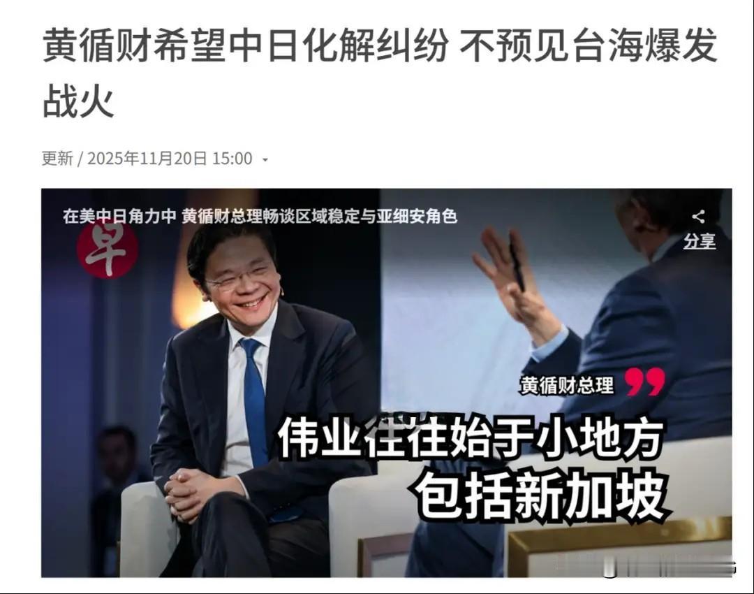 新加坡希望中日和解,因为高市早苗已经服软,劝中国大度一些。墙头草是没有国格和人格的…[捂脸] 真没看出来高市早苗拿出实际的为自己错误言论而采取的降温行动。 反到是小泉进次郎称,“日本自卫队可以保障台海安全”。 这不是赤裸裸的挑衅吗? 现在连美国都没有帮日本说话,建议新加坡就不要掺乎了。 朋友们,你们对此事怎么看? 欢迎大家在评论区探讨,留言…[送心]