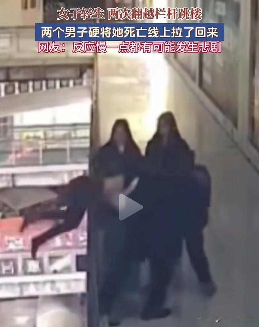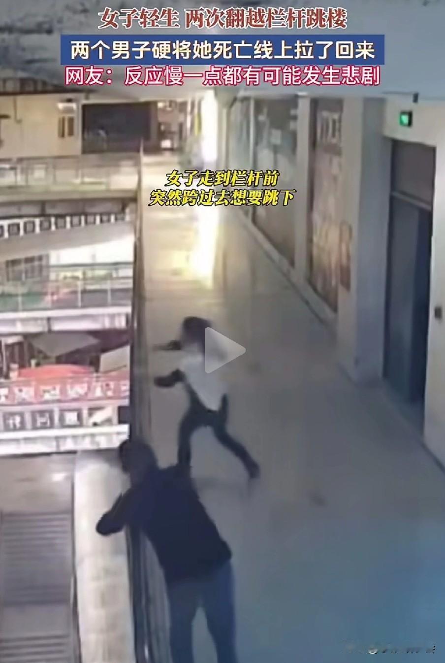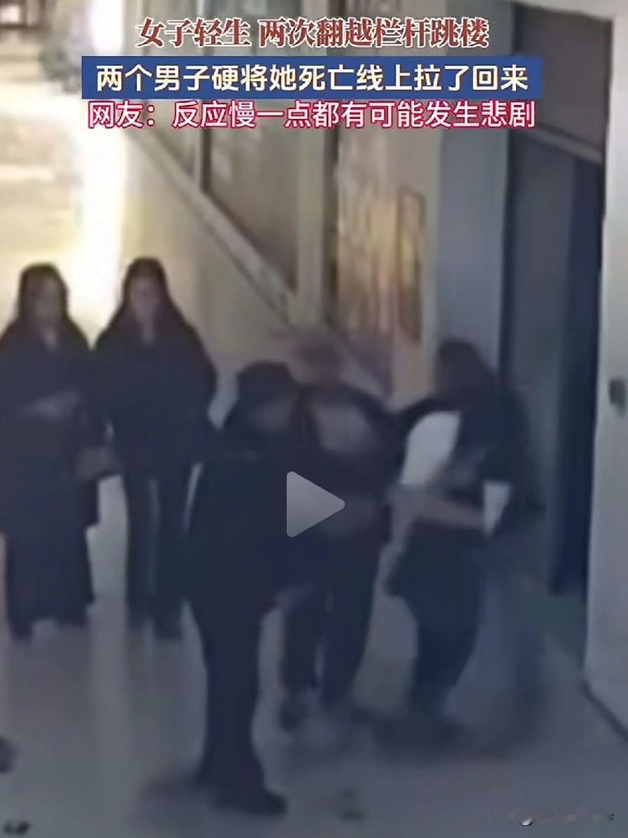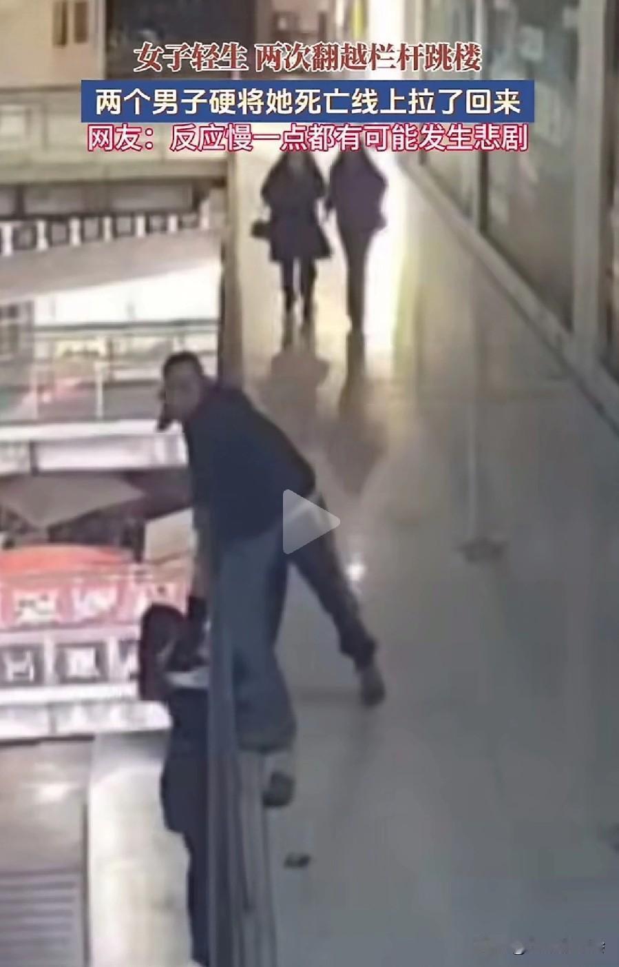 但凡晚一秒,悲剧就可能发生。 一男子在走路时,看出了美女的异常,果不其然,美女毫不犹豫地翻过栏杆,准备一跃而下,要知道这楼很高,掉下去肯定是九死一生。 男子眼疾手快,一把抓住了美女的一只胳膊,这个时候来了一个戴帽子的男子,二人合力把美女拉了上来。 上来后的美女情绪还很激动,二人正劝解时,美女趁着二人不备,再一次做出来跳楼的动作,动作很快,还好戴帽男子拽住了美女的一只胳膊。 在众人的合力下,美女又一次被他们从死亡线上拉了回来。这一次,男子死死搂住美女,生怕她再一次去跳楼。 还好两位男子眼疾手快,否则美女掉下去,肯定会危及生命。 为两位男子点赞!跳楼事故 高楼坠楼 跳楼事故 坠楼故事 高楼坠楼 美女坠楼