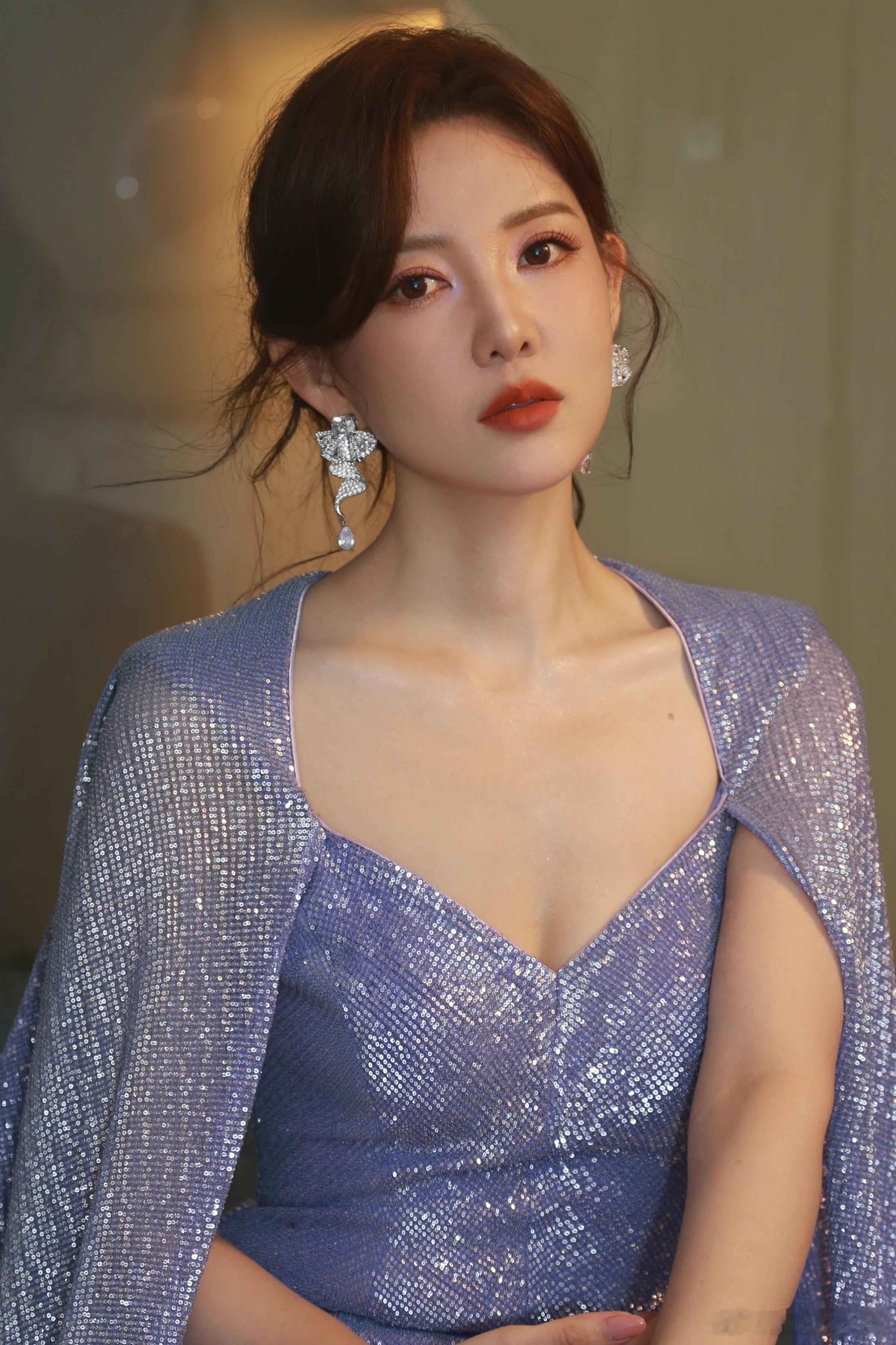 鞠婧祎 简约优雅的金色长裙,搭配利落的高马尾发型,在暖色调背景烘托下,尽显空灵