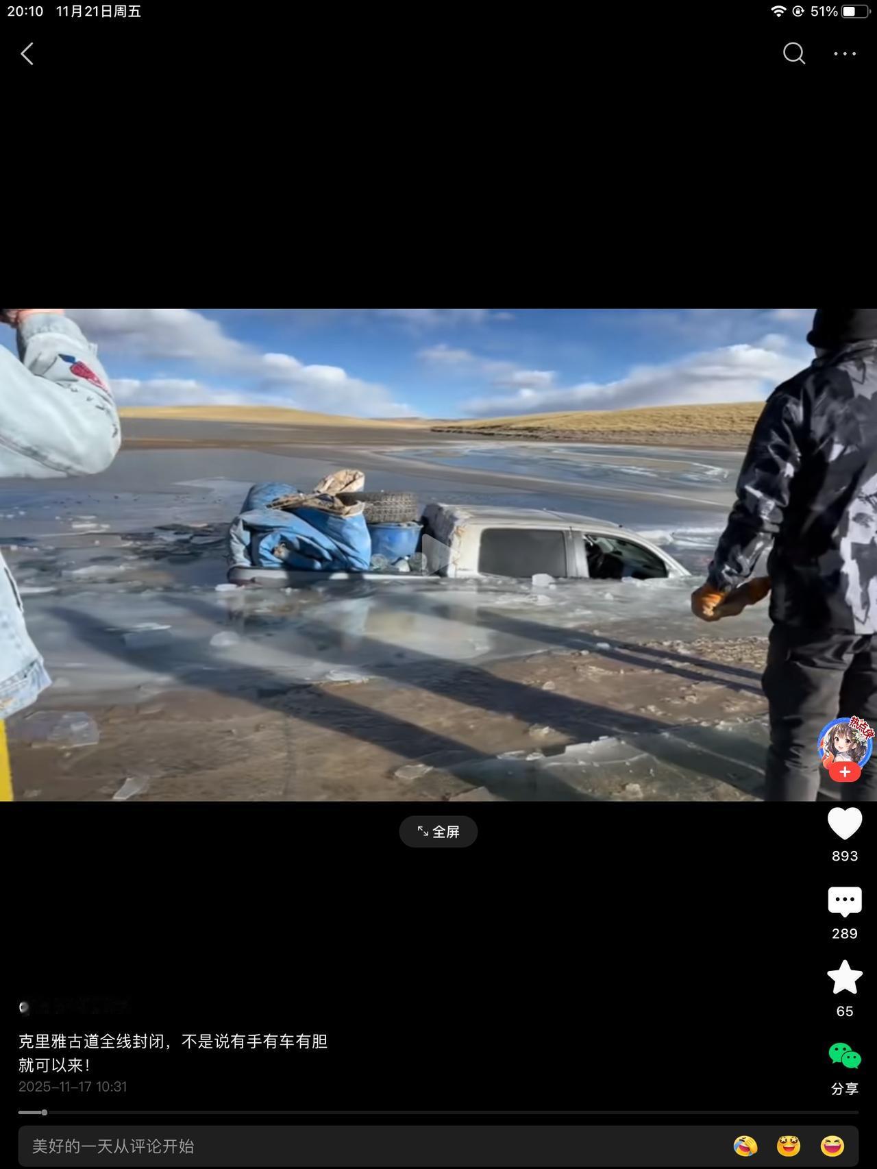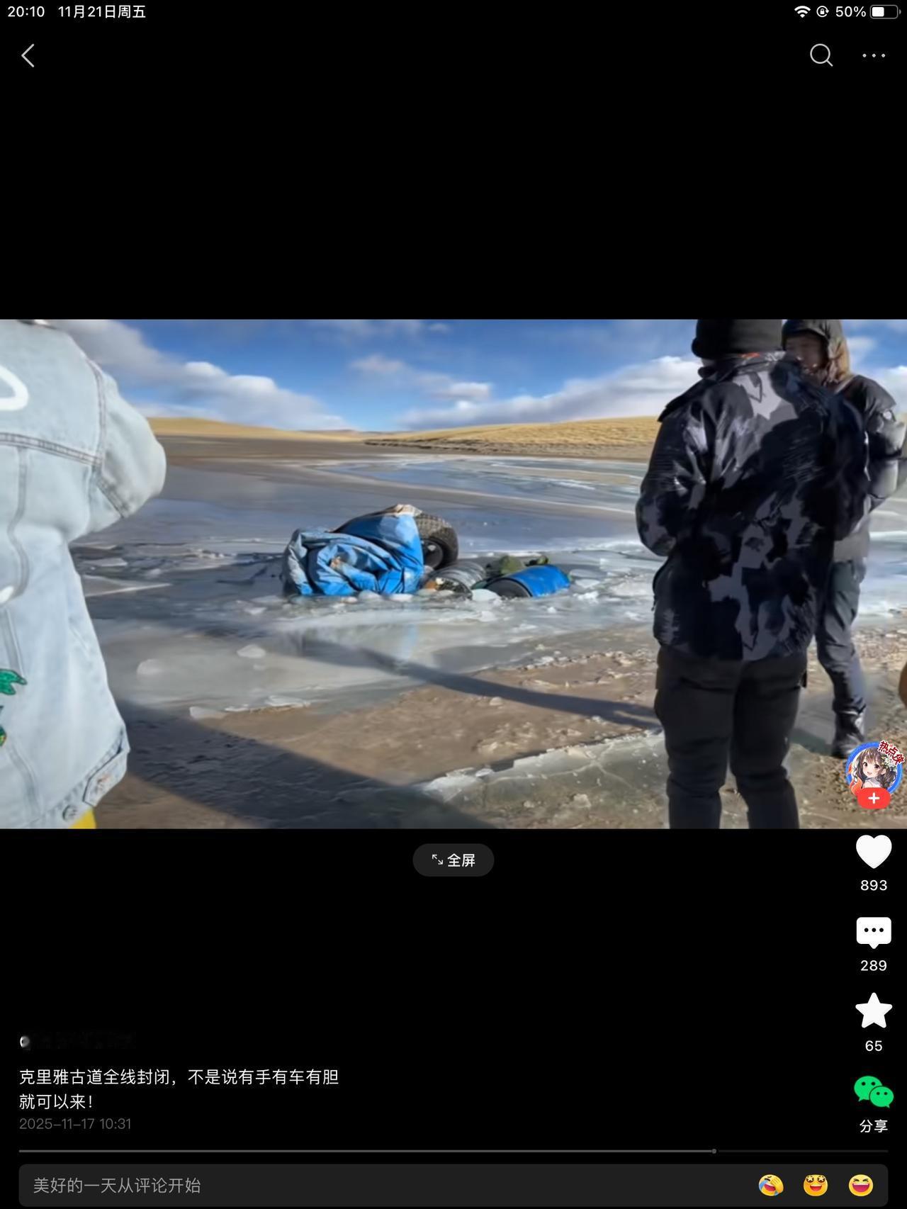 敬畏大自然,敬畏大自然,都是空话,没人听。我们这边还没到零下,还没下雪。这大草原的冰,怎么可能冻透!这才冷了几天啊?就敢在冰上走? 好歹,车里好像没人。也是万幸了。反正,我觉得是没人。看着没人叫嚷,很平静的,跟车说再见。都是勇士啊!你不服不行。