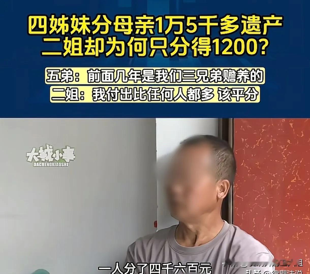重庆,母亲去世后,三兄弟把母亲留下的15000元遗产给分了,他们三兄弟每人分了4600元,只给女子留了1200元,女子气坏了:自己对父母付出的比任何兄弟都多,这笔钱应该平分。可弟弟却说:前面几年都是我们3兄弟在照顾,2姐只照顾母亲2年,每年3个月,每月200元,算下来就是1200元。 唐大姐找来调解员,说自己母亲3月13日去世后,自己的2个弟弟和1个哥哥却把母亲留下的遗产给分了,自己作为女儿,什么都没看到。她觉得兄弟的做法太过分了,母亲刚去世那会,2个弟媳就把母亲的东西给烧掉了,什么都没留给自己,她现在就想讨一个公道回来。老五见状,急忙解释,他说从母亲的卡里总共取出了15816.4元,他们三兄弟每人分了4600元,剩下的1200元交给了老大,让老大转给老二。 兄弟们用记账式算法给亲情明码标价,这种思路本身就站不住脚。把照顾母亲折算成“每月200元”,等于把赡养义务当成可以现金结算的劳务外包,完全扭曲了亲情的本质。女儿长期付出的情感劳动、日常探望的关怀、关键时刻的决策参与,这些价值远比兄弟们的机械计算更珍贵。 从法律层面看,这种私自分配遗产的方式涉嫌违法。按照《民法典》规定,子女对父母遗产享有平等继承权,不论男女。即便要区分份额,也应当根据各自承担的赡养义务来定,而非由部分继承人擅自瓜分。如果唐大姐能证明自己尽到主要赡养义务,她不仅可以要求平分遗产,甚至有权主张多分。兄弟们所谓的“分配方案”根本不具备法律效力,真正对簿公堂时法官会重新划定份额。 更值得深思的是,这起纠纷折射出部分家庭仍存在的性别不公。儿子们理所当然地将自己视为主要继承人,而出嫁女儿的权利被边缘化。类似情况在农村地区尤为常见,有人认为“嫁出去的女儿泼出去的水”,这种观念直接违背了“继承权男女平等”的法律原则。现实中,从重庆到广西都有大量案例表明,司法机关通常会坚决维护女儿的平等继承权。 遗产分配引发的家庭矛盾往往源于缺乏事先规划。如果父母生前能订立合法遗嘱,或子女们提前用协商方式明确分配方案,很多纠纷本可避免。对于唐大姐这样的处境,最佳解决途径是先尝试家庭内部协商,必要时寻求人民调解委员会介入。若调解无效,完全可以通过诉讼主张权利,法律会保护她的合法继承份额。 当金钱算计凌驾于血脉亲情之上,再完美的分配方案也弥补不了家庭关系的裂痕。遗产继承的本质应该是爱的延续而非争夺,比起纠结于万元左右的数额,如何让每个家庭成员感受到被尊重与认可,才是真正需要解决的命题。 各位读者你们怎么看?欢迎在评论区讨论。