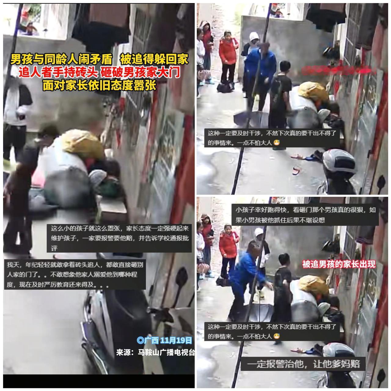 小学生砸门挑衅:这哪是“孩子气”,分明是“小霸王”养成记! 广西某小区监控拍下惊人一幕:几个小学生追到同学家门口,带头男生不仅疯狂拉门叫嚣,见门不开竟直接抄起砖头砸门! 更离谱的是,当屋内大人出来制止时,这孩子非但没害怕,反而梗着脖子对峙,活脱脱一副“我能奈我何”的嚣张样!这哪是孩子间的打闹?分明是家庭教育缺失下的“小霸王”现形记! 视频里最扎心的是细节:砸门男生砸门时那股狠劲,面对大人时那副“无所谓”的表情,完全不像个小学生该有的样子。 网友们的评论更是一针见血:“现在敢砸门,长大就敢砸人!”“家长不管?社会会替你管!”“这孩子怕不是觉得自己特帅,在朋友面前挣足了面子?” 这些话听着刺耳,却道出了关键——当“熊孩子”背后站着“熊家长”,当错误行为得不到及时纠正,小打小闹就会变成定时炸弹。 更让人担忧的是,这种“暴力解决问题”的思维正在低龄化。有些孩子从小被宠得无法无天,觉得“我闹我有理”“我横我怕谁”。 可他们忘了,社会不是家里,法律更不是摆设。今天能用砖头砸门,明天就可能用砖头砸人;今天能对长辈无礼,明天就可能对规则漠视。这种“小恶”不制止,终会酿成“大祸”。 有人会说:“孩子小,不懂事。”但“不懂事”不是免罪金牌!真正的教育,是让孩子明白:任性要付出代价,冲动会带来后果。 家长如果舍不得管,社会会替你管;学校如果管不了,法律会教你做人。毕竟,我们养的是孩子,不是“祖宗”! 最后想问所有家长:如果这是你家的孩子,你会怎么做?是继续纵容,还是及时纠偏?是等他闯出大祸再后悔,还是现在就把“规则意识”刻进他心里? 评论区聊聊你的看法——毕竟,每个“熊孩子”的背后,都站着需要反思的家长。