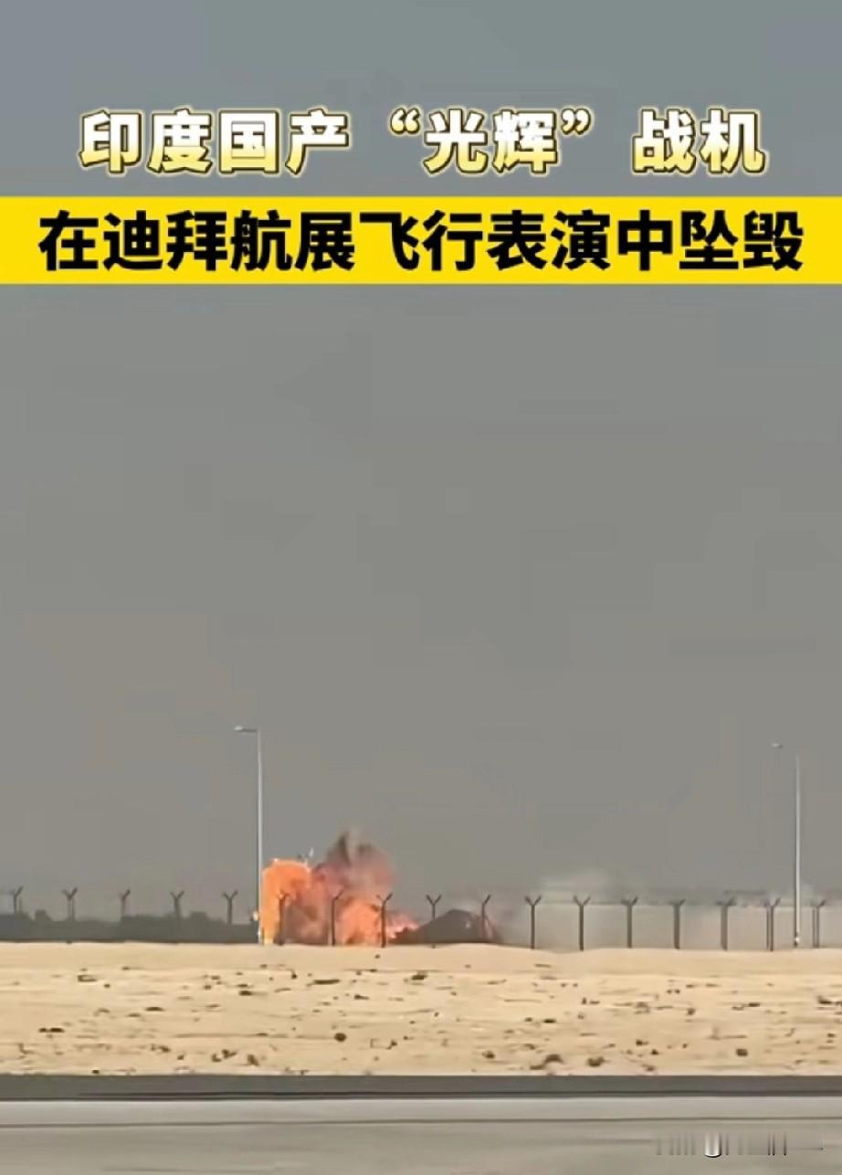 印度的光辉战机又掉下来坠毁[大笑][大笑]!而且是迪拜国际航展! 21日,阿联酋迪拜航展最后一天,印度号称能碾压歼20的国产“光辉”战机在飞行表演中像导弹一样,直冲地面爆炸,现场燃起大火和浓烟。并且飞行员未弹射,可能一起与飞机一同随风而去… 昨天飞机就开始漏油,按照莫迪老仙的思路,只要冥想光辉战机超过中国,那必定超过中国,冥想飞机是好的,那就是好的,漏油都不是问题,有老天爷保佑。 这下好了,又丢人了。不过凭印度人的脑回路,背锅侠已经找好,飞机的部分零件是中国产。 不过,依据印度人的思路,飞机坠毁是正常,不坠毁才反常,加油,印度,继续坠毁,继续吹牛,继续嗨… 印度五代战机 印度战机被毁 印度战机坠落 光辉飞机 印度坠机